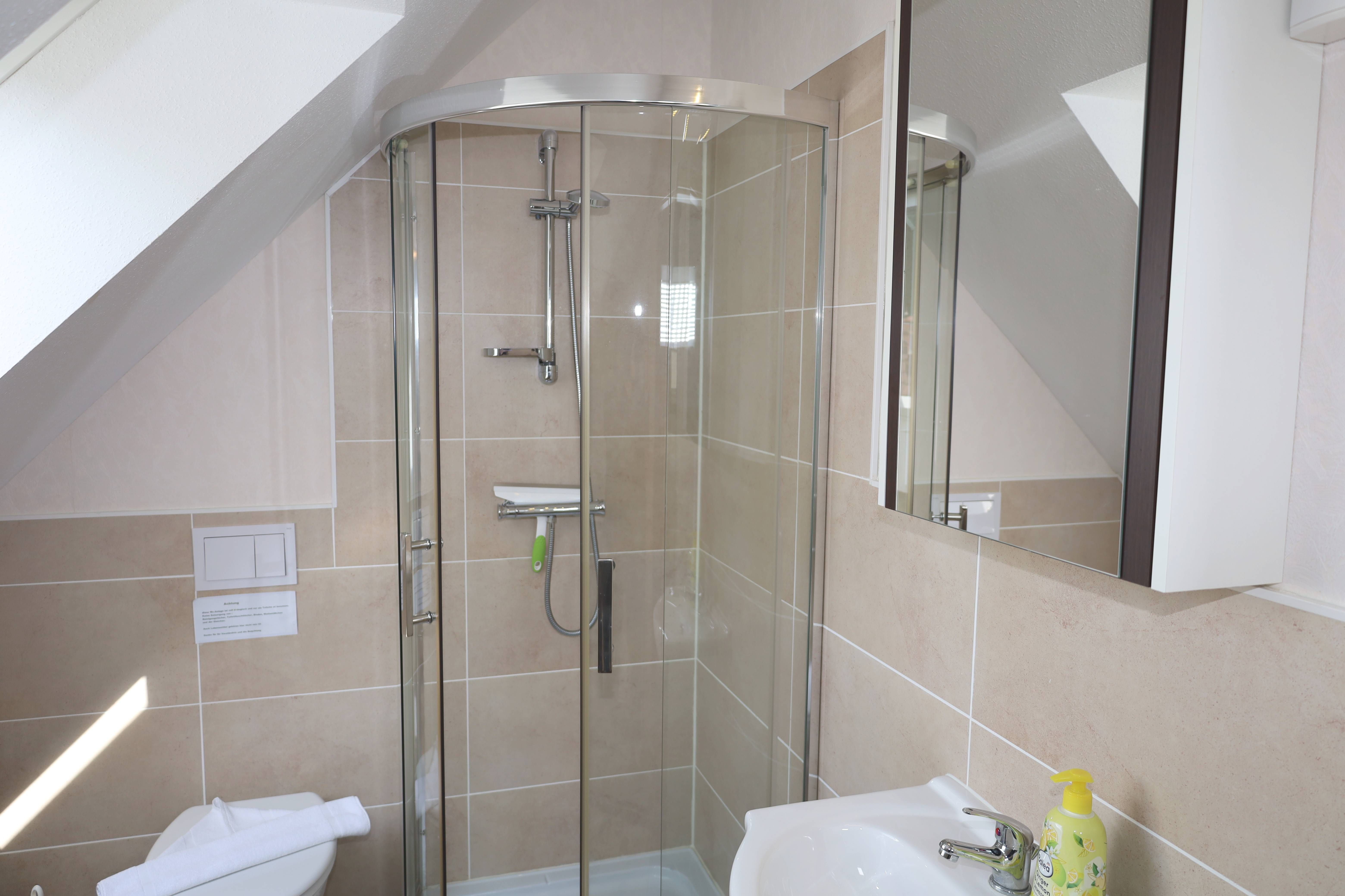 Auch hier steht Ihnen ein helles Badezimmer mit Dusche und WC zur Verfügung.