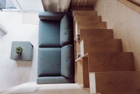 Über eine Treppe mit integriertem Stauraum erreichen Sie das Schlafzimmer im Obergeschoss. Dort erwartet Sie ein komfortables Doppelbett (180 x 200 cm). Dieses besteht aus zwei Einzelbetten (je 100 x 200 cm), die bei Bedarf auseinandergezogen werden können so kann jeder Gast in einem eigenen Bett schlafen.