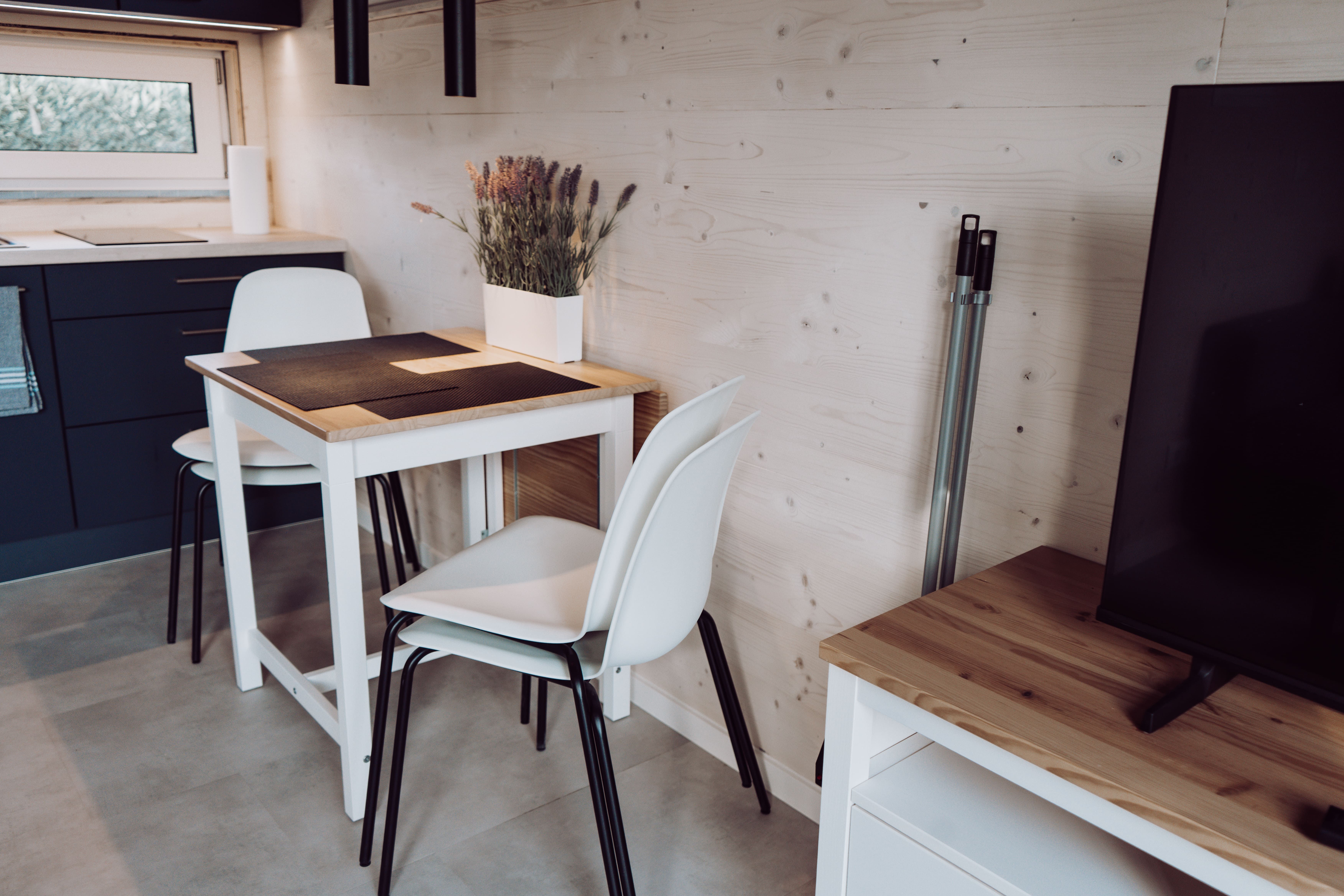 Jedes Tiny House verfügt über eine eigene Terrasse mit Sitz- und Grillmöglichkeiten, sodass auch entspannte Stunden im Freien nicht zu kurz kommen. WLAN ist selbstverständlich kostenfrei verfügbar.