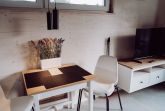 Die moderne Küchenzeile ist mit einem 2-Platten-Ceranfeld, kleinem Backofen, Wasserkocher, Kaffeemaschine und Kühlschrank ausgestattet. Am praktischen Esstisch finden bis zu vier Personen Platz. Die Küche ist vollständig ausgestattet, sodass Sie sich bequem selbst versorgen können.