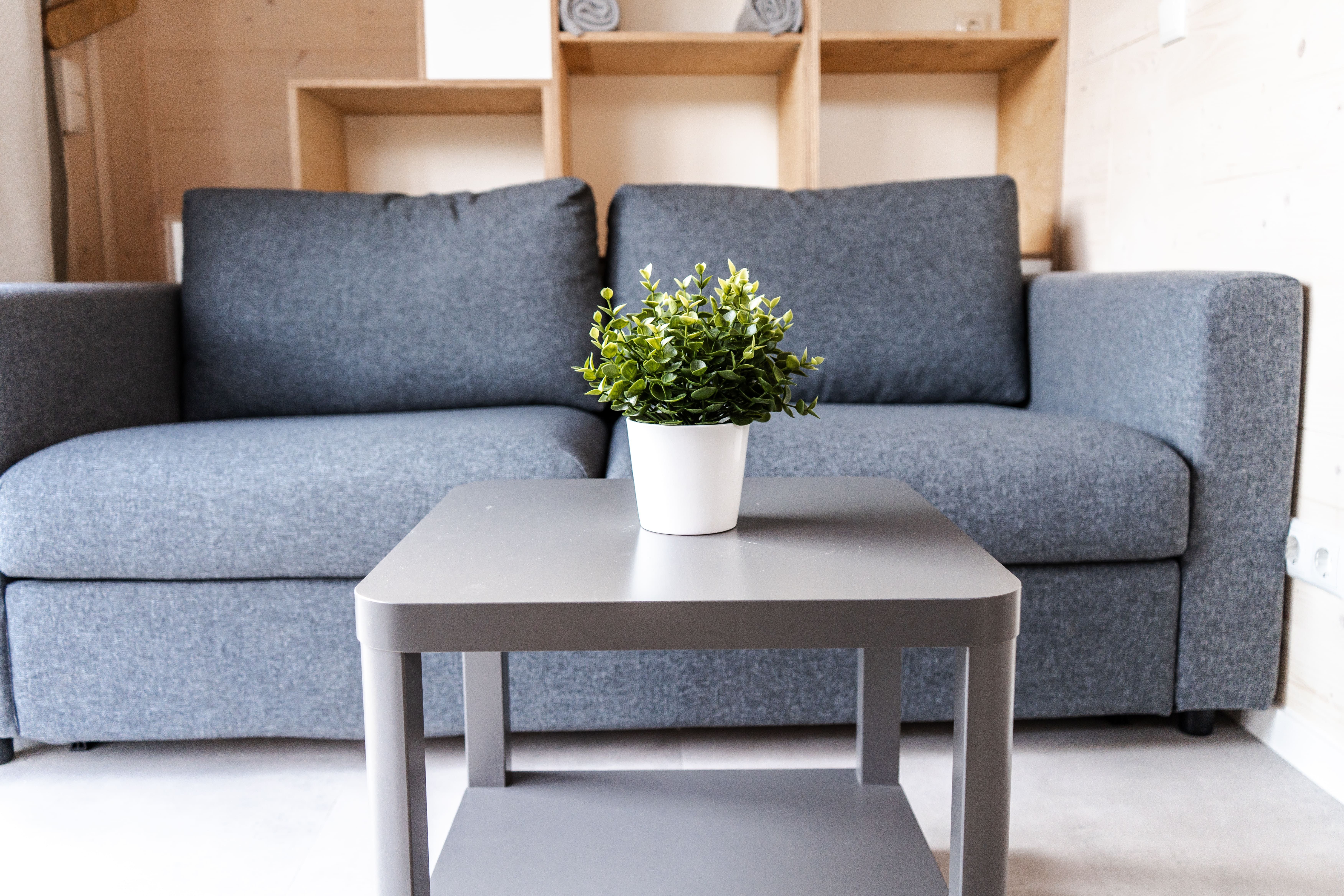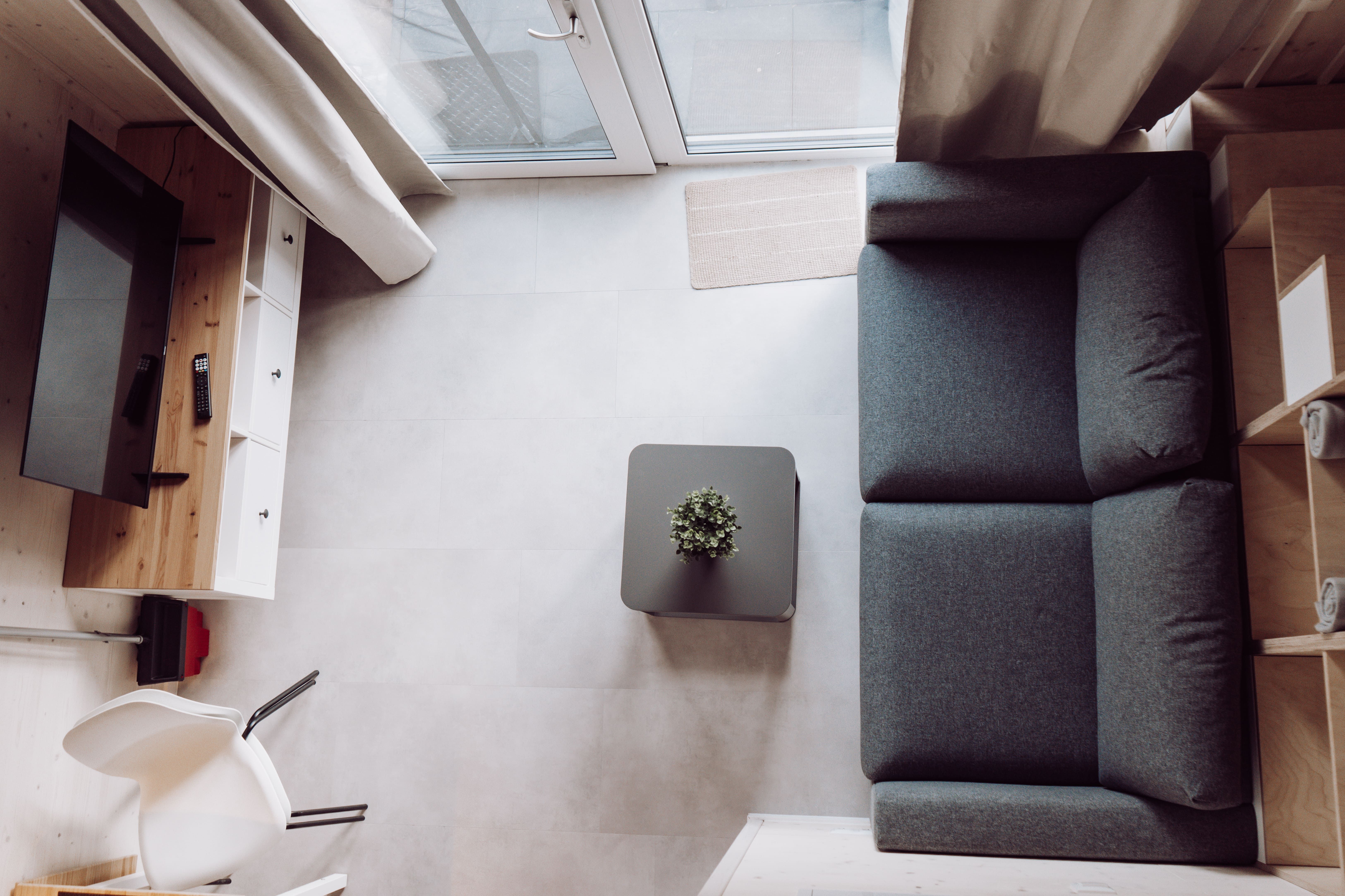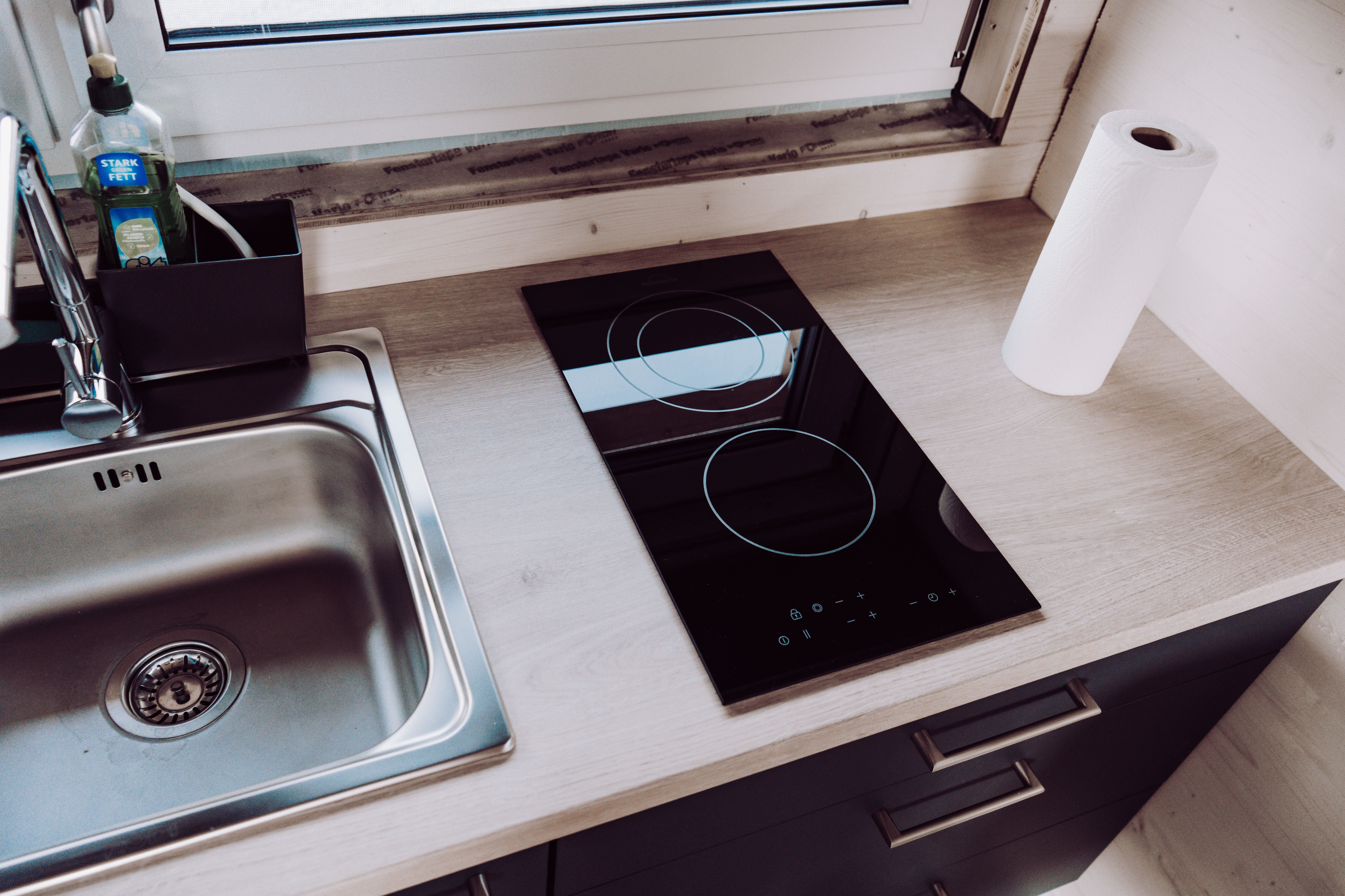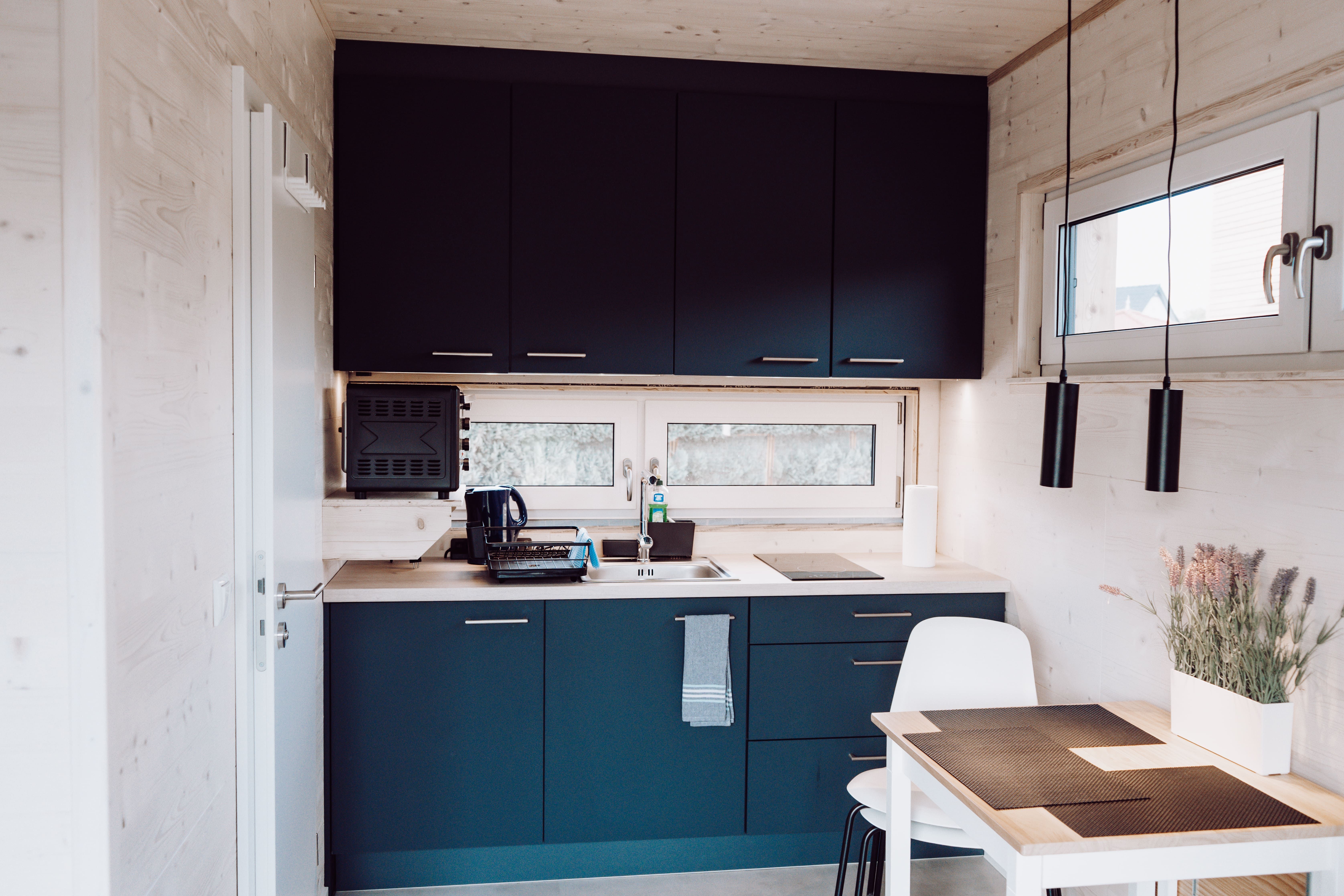 Zusammen mit der Schlafcouch im Wohnbereich (140 cm breit, mit Matratze) bietet das Tiny House Platz für maximal 4 Gäste. Für besonderen Schlafkomfort stellen wir Ihnen Decken in Übergröße (220 x 155 cm) zur Verfügung.