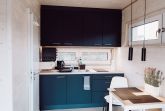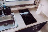 Die moderne Küchenzeile ist mit einem 2-Platten-Ceranfeld, kleinem Backofen, Wasserkocher, Kaffeemaschine und Kühlschrank ausgestattet. Am praktischen Esstisch finden bis zu vier Personen Platz. Die Küche ist vollständig ausgestattet, sodass Sie sich bequem selbst versorgen können.