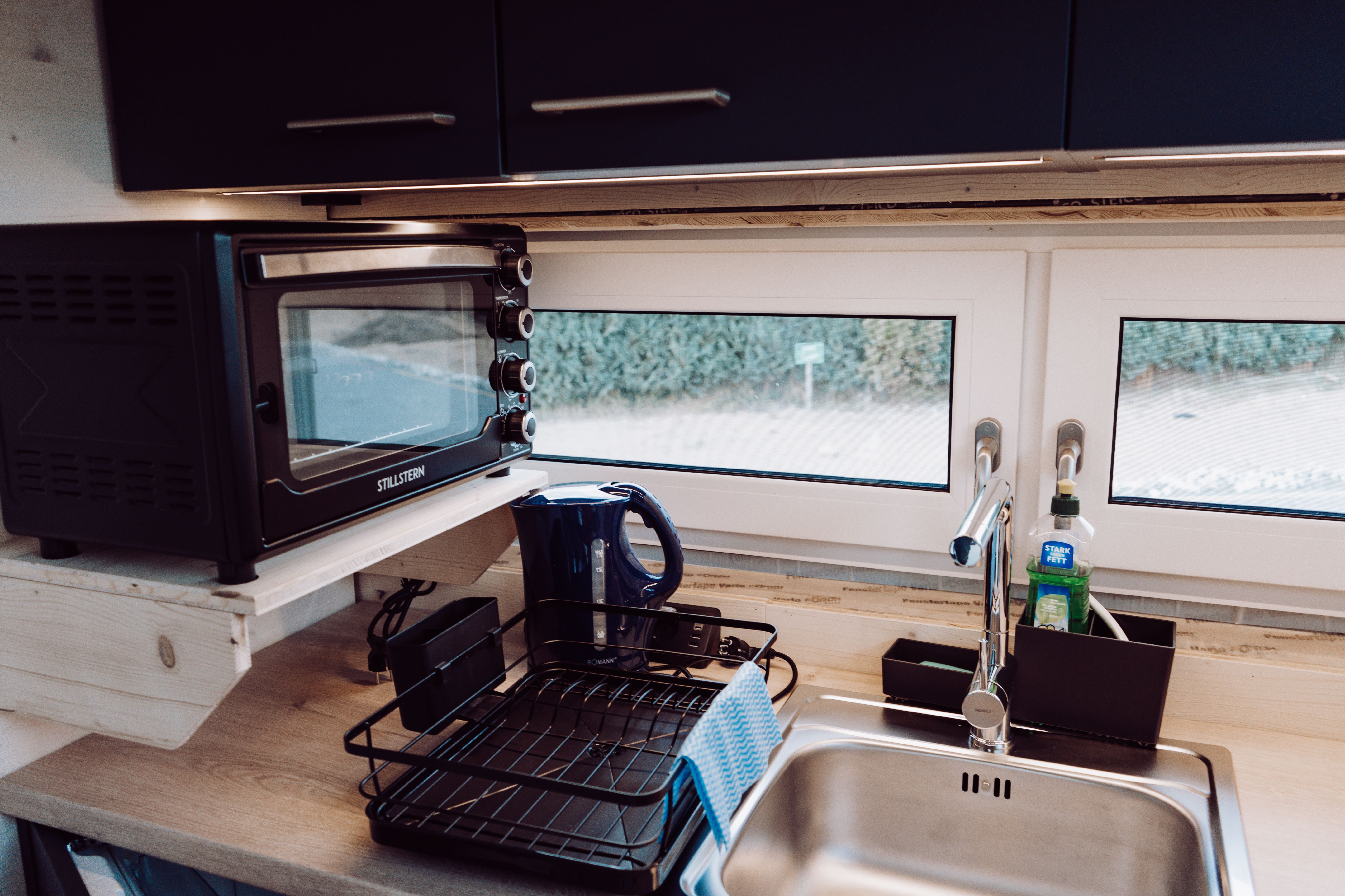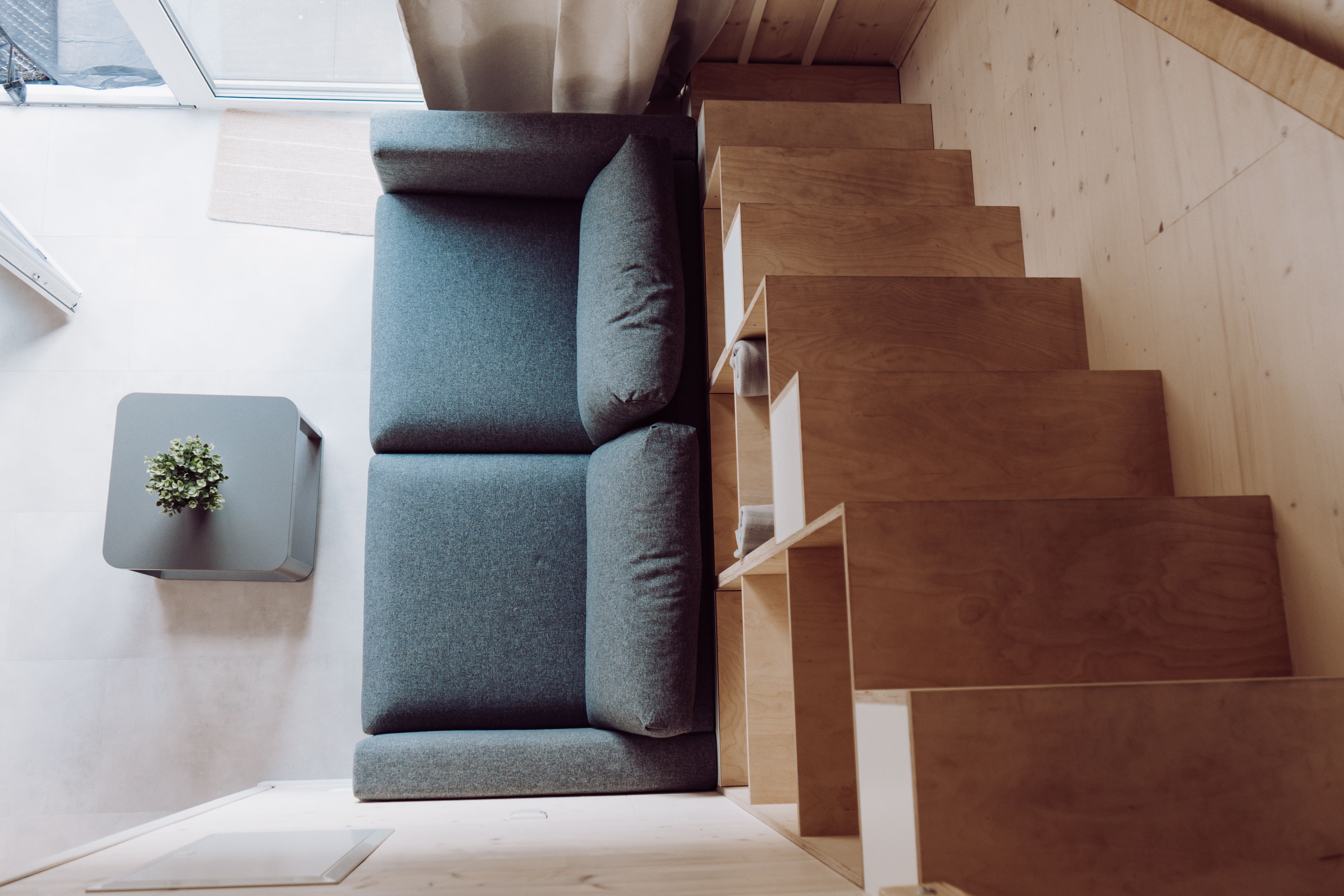 Zusammen mit der Schlafcouch im Wohnbereich (140 cm breit, mit Matratze) bietet das Tiny House Platz für maximal 4 Gäste. Für besonderen Schlafkomfort stellen wir Ihnen Decken in Übergröße (220 x 155 cm) zur Verfügung.