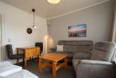 Im Wohnbereich können Sie auf der Couch entspannen. Die Einrichtung ist zweckmäßig und es gibt eine Sitzecke für bis zu 3 Personen.