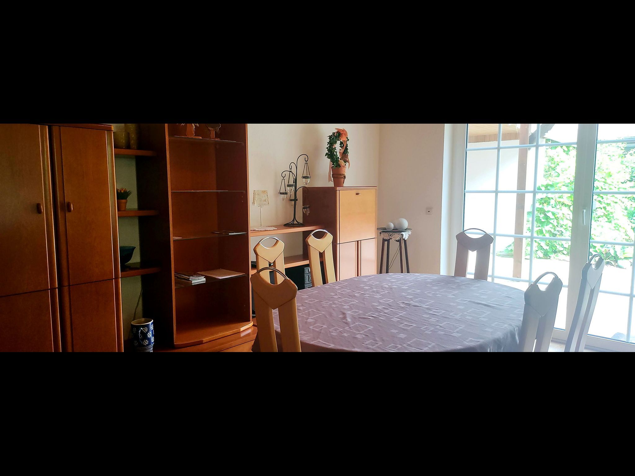 • Wohnzimmer/Aufenthaltsraum mit Sitzgruppe, Esstisch, TV und Radioanlage