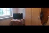 Monteurzimmer für Nichtraucher mit Einzelbett für 1 Person. Sessel, Tisch und Flachbild-TV.