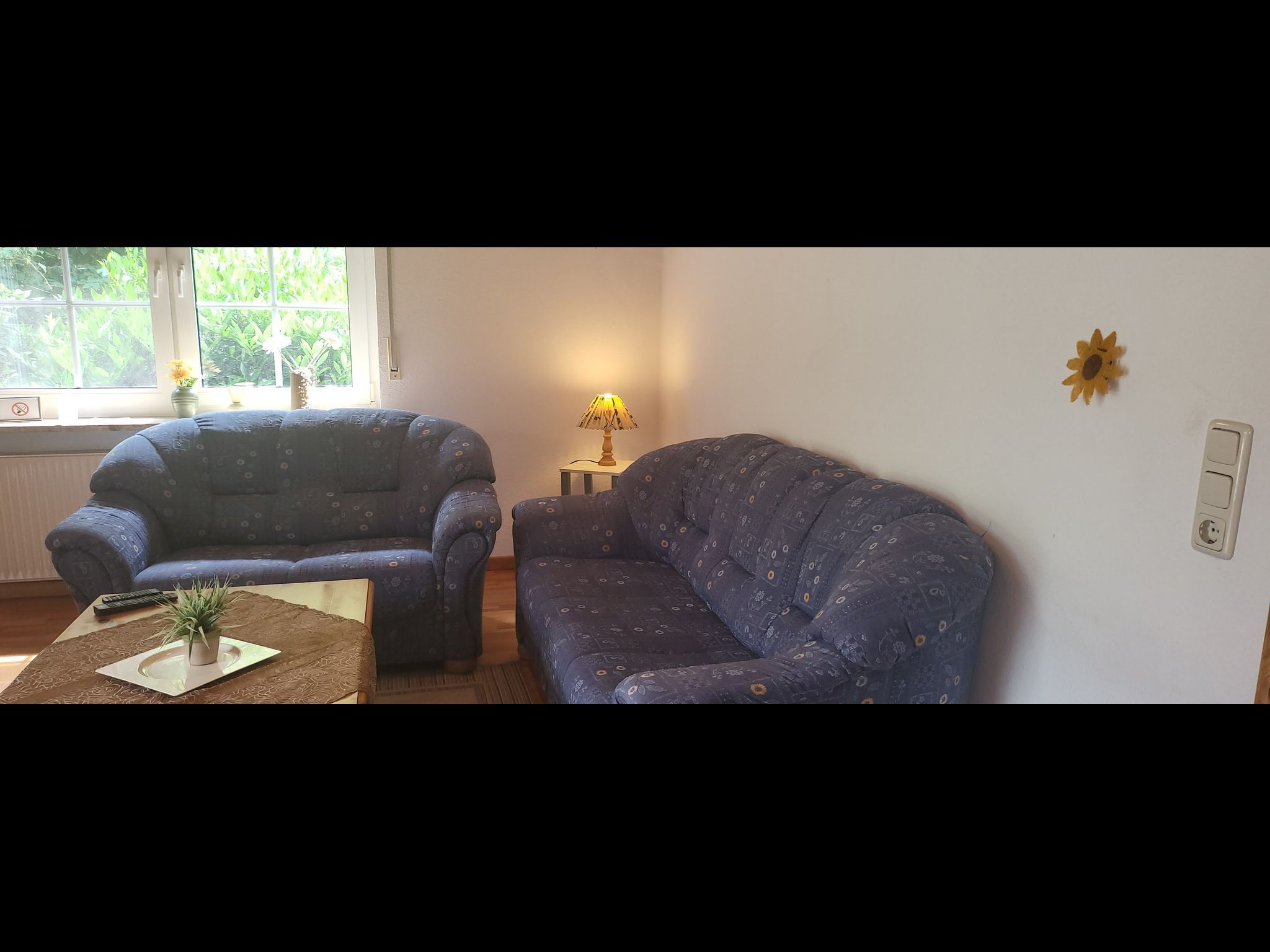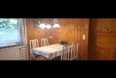 • Wohnzimmer mit Sitzgruppe, Esstisch, SAT-TV und Radioanlage