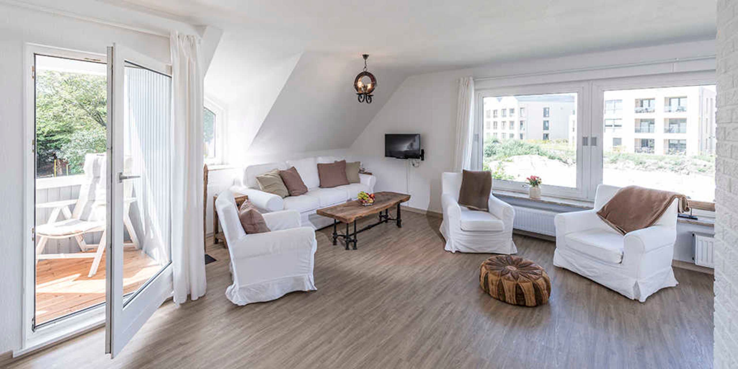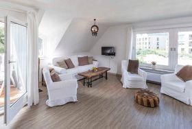 Das große Wohnzimmer ist lichtdurchflutet und bietet mit Essecke und Sitzecke (mit TV) viel Platz für jeden einzelnen. Die schöne Küchenzeile ist gut ausgestattet bis hin zu Nespresso-Maschine und Milchschäumer. Das helle, komfortable Bad mit Dusche und WC bietet wirklich viel Platz. Und im separaten Schlafzimmer, dessen Fenster auf den ruhigen Garten hinausgehen, kann man erholsam Schlafen. All das zusammen macht Ihren Aufenthalt angenehm und unkompliziert. Zu zweit ist das Platzangebot geradezu luxuriös, Sie können hier aber auch gut zu dritt oder viert Ihren Urlaub verbringen.