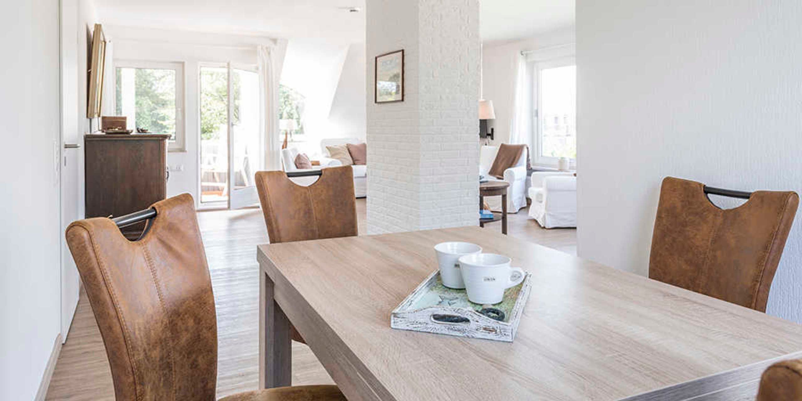 Wir lieben Diekgraf, die edle Ferienwohnung in Dangast. Die großzügige 80 qm-Wohnung ist das Sahnestück im Diekhuus Arngast. Wir haben schöne alte Möbelstücke der Familie mit moderner heller Einrichtung kombiniert. Wollen Sie Ihren Tag mit einem Tee auf dem geschützten Südbalkon beginnen? Oder lieber lesen, träumen und den Wolken nachgucken vor der großen Fensterfront nach Westen?