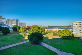 Die frisch renovierte Ferienwohnung befindet sich im Haus L des Ferienparks, in der 4. Etage, und bietet einen großzügigen Balkon mit Blick ins Grüne, zum Binnensee und mit etwas Ostseeblick. Genießen Sie entspannte Stunden an der frischen Seeluft.