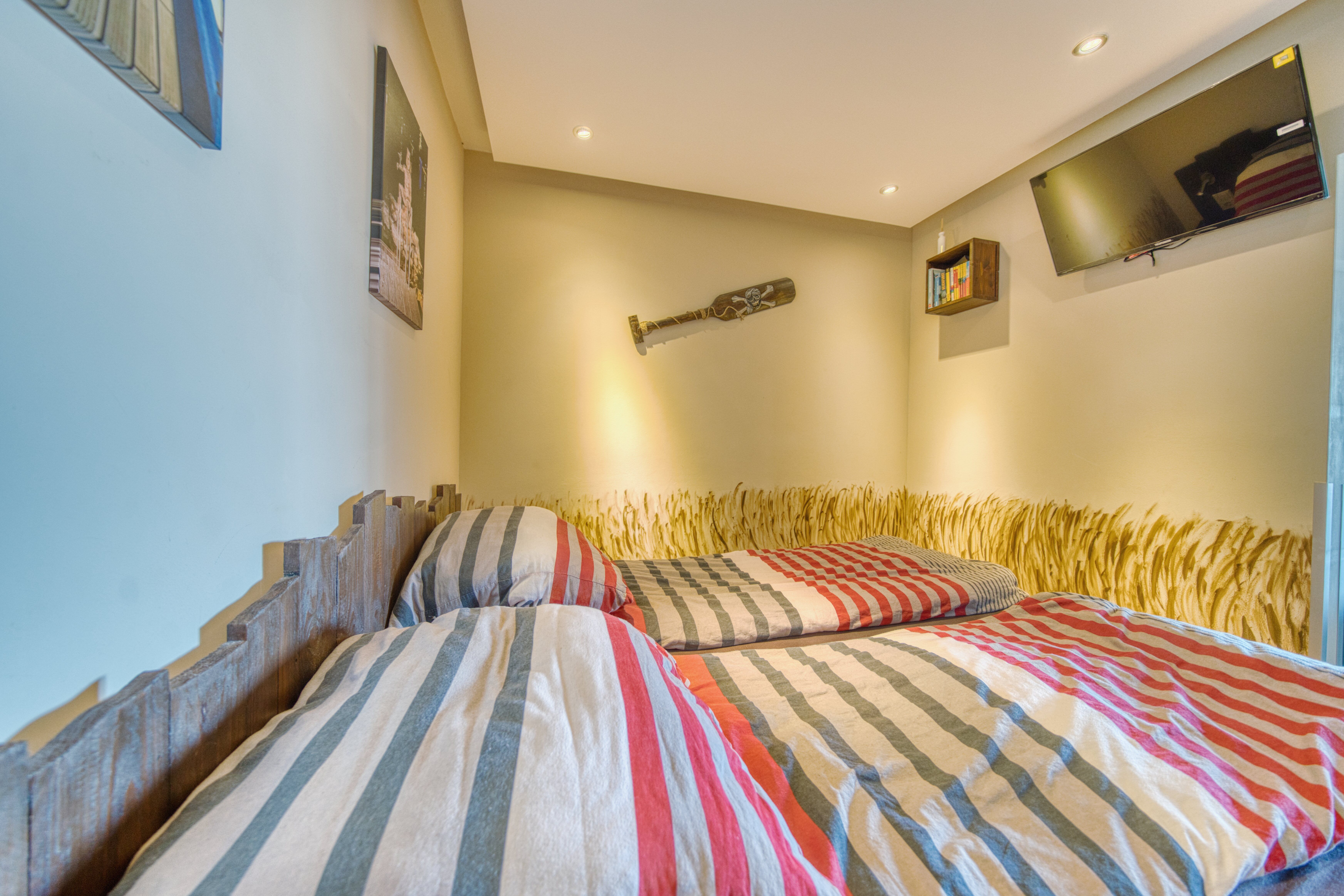 Separates Schlafzimmer mit TV und Doppelbett (Sitzhöhe 55 cm, 180x200cm)