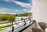 Besonders charmant ist die überdachte Loggia in nordöstlicher Ausrichtung: Beginnen Sie den Tag bei frischer Seeluft und sanftem Sonnenschein mit einem gemütlichen Frühstück im Freien – der Blick in den idyllischen Park verleiht jedem Morgen eine besondere Ruhe. Die Loggia ist sowohl vom Wohnbereich als auch vom Schlafzimmer aus zugänglich und mit hochwertigen Gartenmöbeln ausgestattet – ideal für entspannte Lesestunden oder laue Sommerabende.