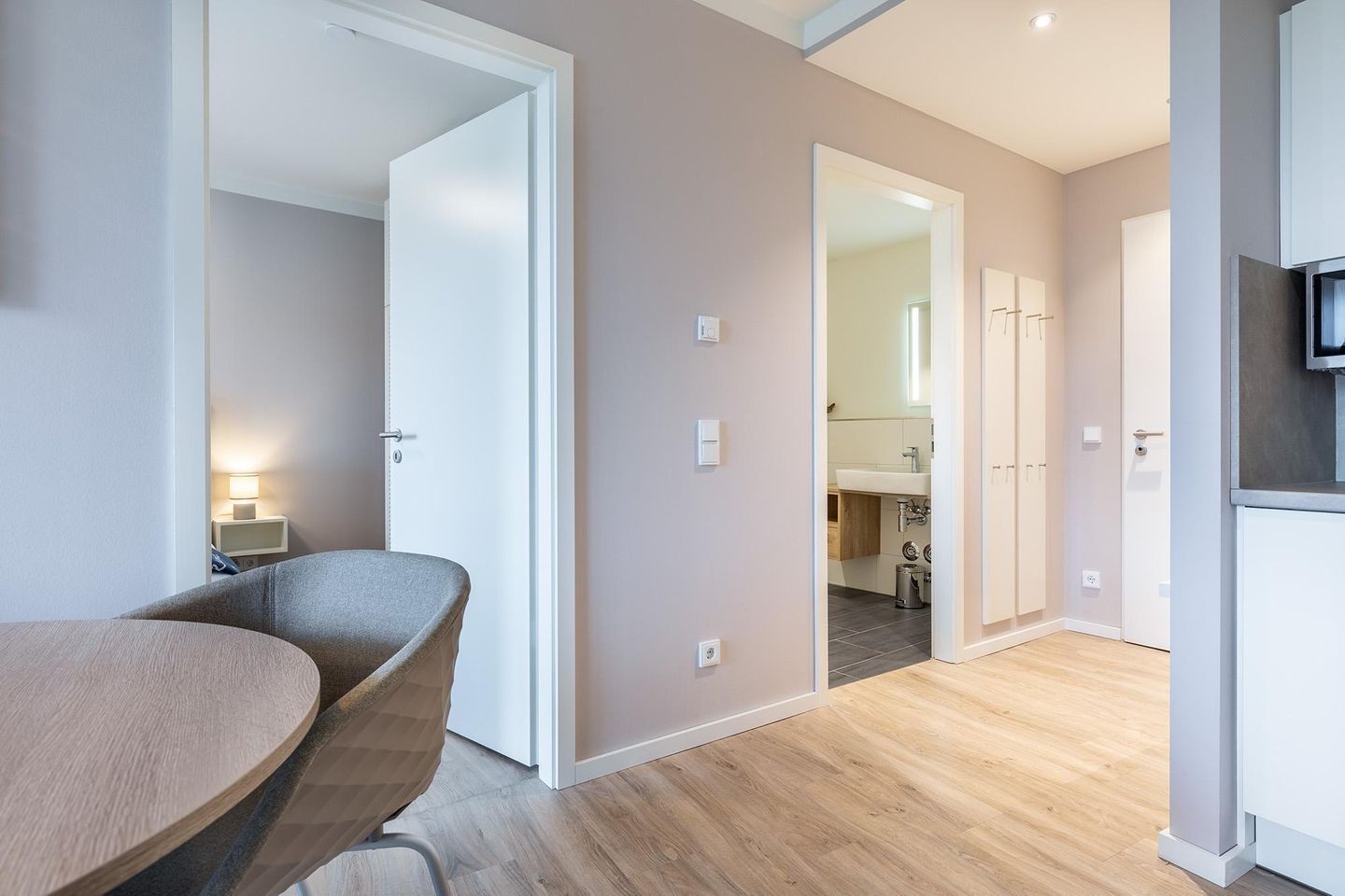 Im Inneren erwartet Sie ein helles, modernes Nichtraucher-Apartment mit durchdachtem Komfort: Genießen Sie die behagliche Fußbodenheizung, kostenfreies WLAN sowie eine offene, voll ausgestattete Küche inklusive Geschirrspüler, Mikrowelle, Backofen, Cerankochfeld, Kaffeemaschine, Toaster, Wasserkocher und vielem mehr – perfekt, um auch im Urlaub kulinarisch aktiv zu werden.