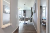 Die angrenzende voll ausgestattete Küche lässt keine Wünsche offen: Hier finden Sie einen Geschirrspüler, eine Gefrier- und Kühlschrankkombination, Kaffeemaschine, Toaster, Eierkocher, Wasserkocher, Mikrowelle, sowie einen Herd mit Glaskeramikkochfeld und Backofen. Ob schnelle Mahlzeit oder ausgedehntes Abendessen – hier haben Sie alles zur Hand.