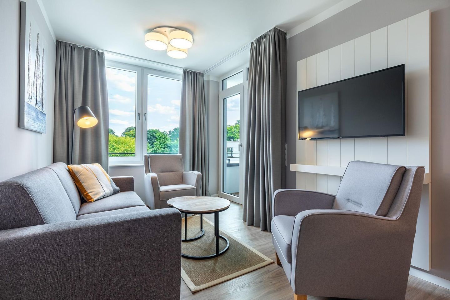 Nur wenige Schritte vom Meer entfernt und direkt am idyllischen Godewindpark erwartet euch eine exklusive Ferienresidenz mit modernen Apartments für bis zu sechs Personen. Das elegante, halbrund gestaltete Gebäude verbindet zeitgemäße Architektur mit hohem Wohnkomfort. Jedes Apartment verfügt über ein kostenfreies WLAN, Fußbodenheizung sowie Sonnenschutzverglasung. Warme Naturfarben schaffen ein behagliches Ambiente, in dem man sich sofort zuhause fühlt.