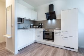 Die voll ausgestattete, offene Küche lässt Ihnen alle Möglichkeiten: Ob ein gemütliches Frühstück oder ein selbstgekochtes Abendessen – mit Geschirrspüler, Gefrier- und Kühlschrankkombination, Kaffeemaschine, Toaster, Wasserkocher, Eierkocher, Mikrowelle, Glaskeramikkochfeld und Backofen ist an alles gedacht.