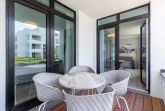 Besonders einladend ist die West-Loggia, die sowohl vom Wohnbereich als auch vom Schlafzimmer zugänglich ist. Hier genießen Sie das angenehme Meeresklima, laue Sommerabende und entspannte Stunden an der frischen Luft.