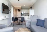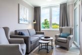 Das helle und moderne Nichtraucher-Apartment ist hochwertig ausgestattet und bietet Fußbodenheizung, sonnenschutzverglaste, teilweise bodentiefe Fenster sowie kostenfreies WLAN. Die offene Küche lässt keine Wünsche offen: Ausgestattet mit Geschirrspüler, Kühl-Gefrierkombination, Kaffeemaschine, Toaster, Wasserkocher, Mikrowelle, Glaskeramikkochfeld und Backofen, finden Hobbyköche hier beste Voraussetzungen für die Zubereitung eigener Mahlzeiten.