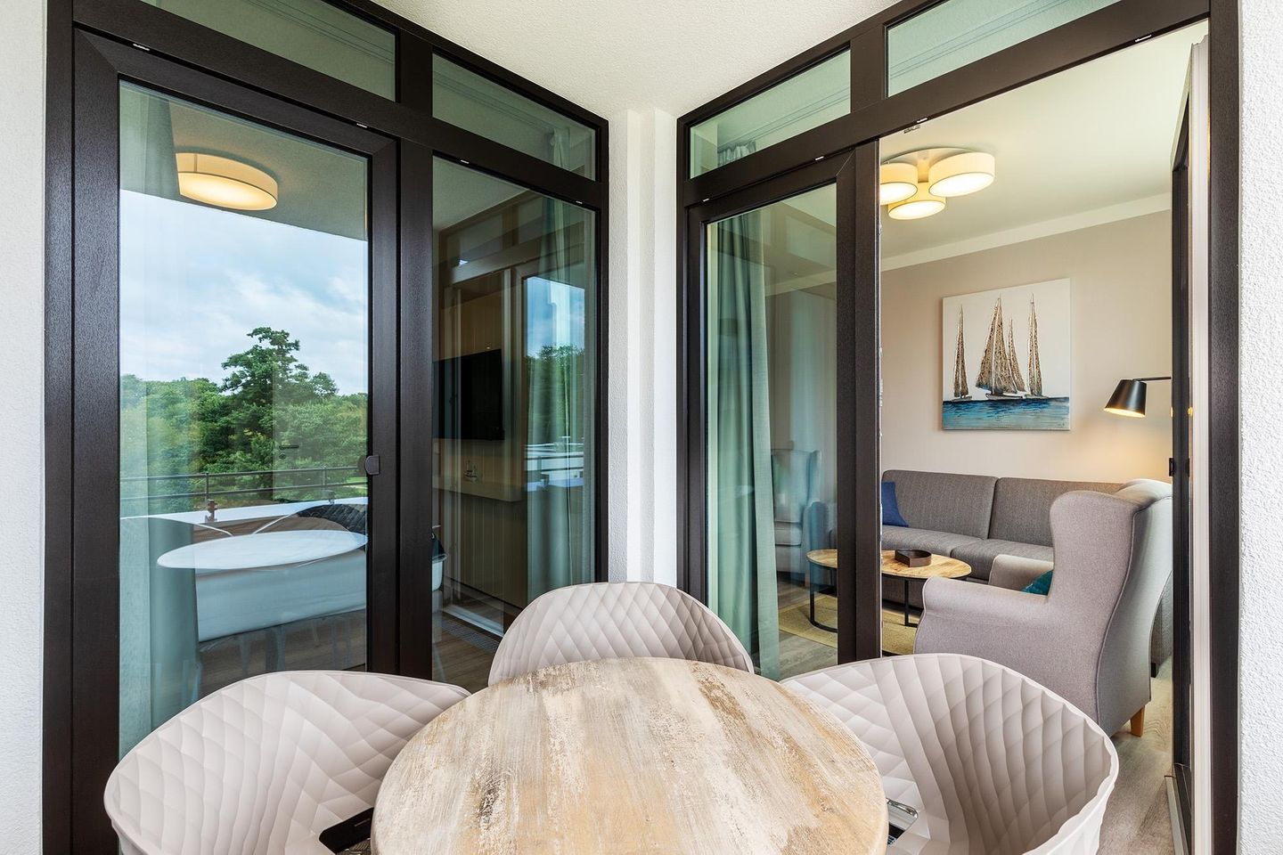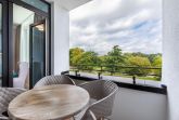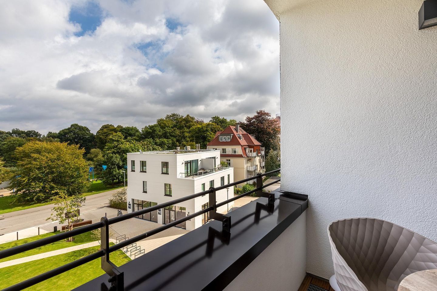 Besonders hervorzuheben ist die nach Osten ausgerichtete, überdachte Loggia mit einem wunderschönen Blick in den idyllischen Godewindpark. Hier starten Sie bereits beim Frühstück mit Morgensonne und frischer Ostseeluft in den Tag – ein Genuss für alle Sinne.