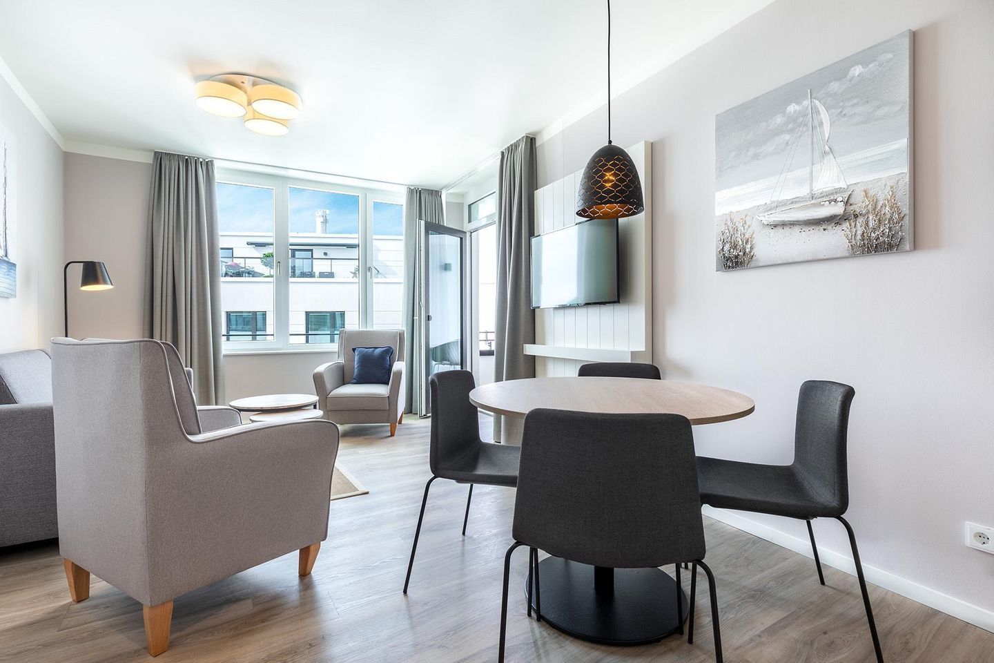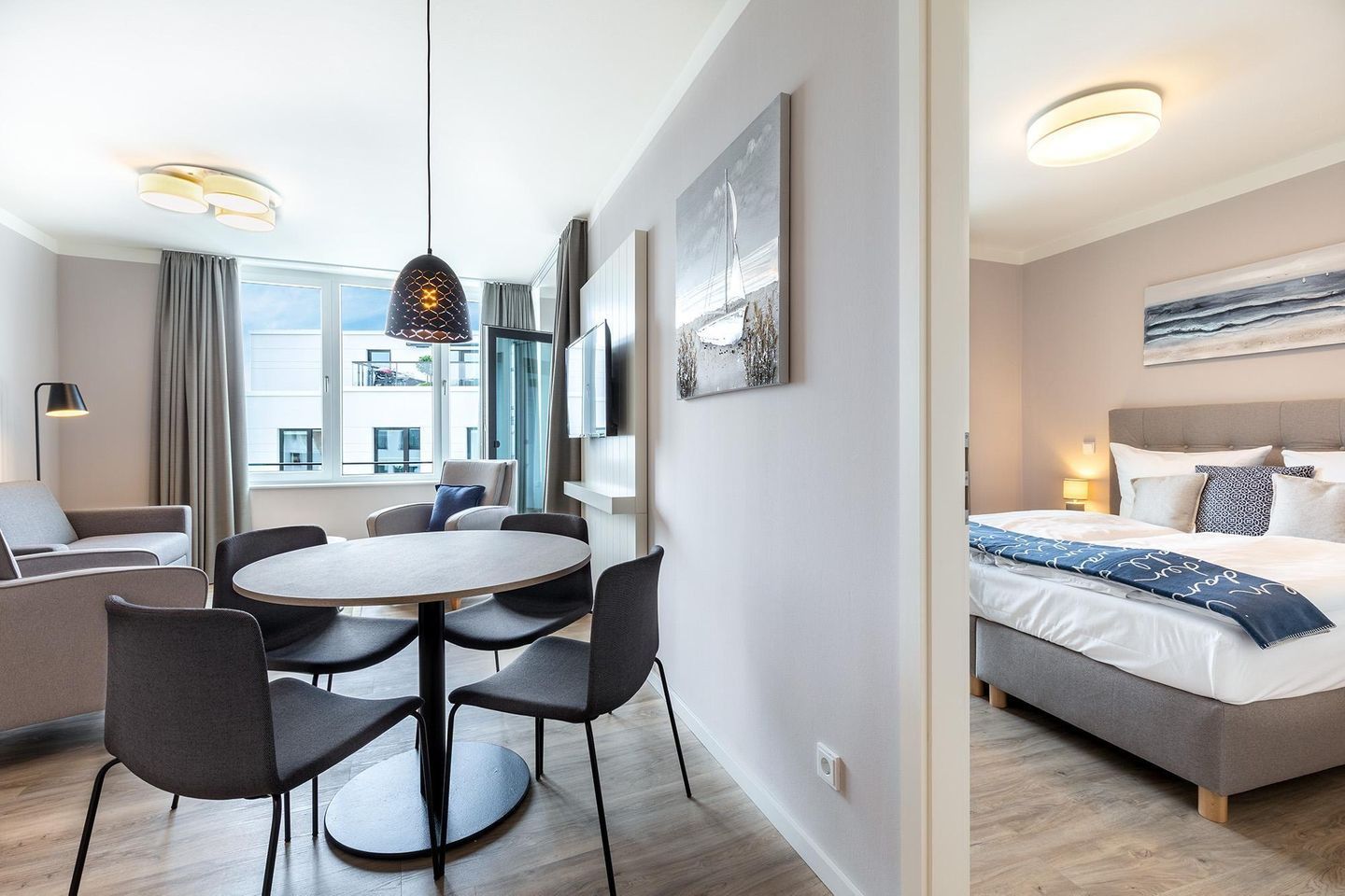 Nur wenige Schritte vom Meer entfernt und direkt am idyllischen Godewindpark erwartet euch eine exklusive Ferienresidenz mit modernen Apartments für bis zu sechs Personen. Das elegante, halbrund gestaltete Gebäude verbindet zeitgemäße Architektur mit hohem Wohnkomfort. Jedes Apartment verfügt über ein kostenfreies WLAN, Fußbodenheizung sowie Sonnenschutzverglasung. Warme Naturfarben schaffen ein behagliches Ambiente, in dem man sich sofort zuhause fühlt.