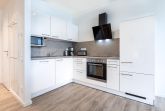 Zur Ausstattung der Ferienanlage gehören außerdem eine Rezeption mit Lobby und Kamin-Lounge, eine Tiefgarage mit inkludiertem Stellplatz (max. Höhe 2 m) sowie gemeinschaftlich nutzbare Waschräume auf jeder Etage. Zwei Aufzüge sorgen für barrierefreien Zugang zu allen Apartments. Fahrräder lassen sich sicher im abschließbaren Kellerraum unterbringen, und vor dem Haus steht eine öffentliche Ladestation für E-Autos zur Verfügung, die gegen Gebühr genutzt werden kann.