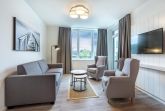 Auch Hunde sind in ausgewählten Apartments herzlich willkommen. Der angrenzende Godewindpark bietet perfekte Bedingungen für entspannte Spaziergänge mit Hund und führt gleichzeitig direkt zum Strand.