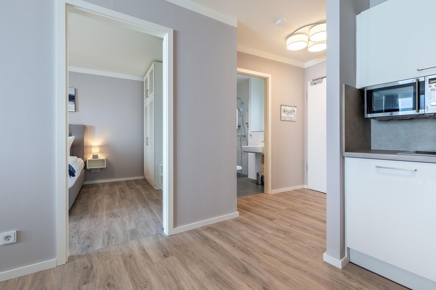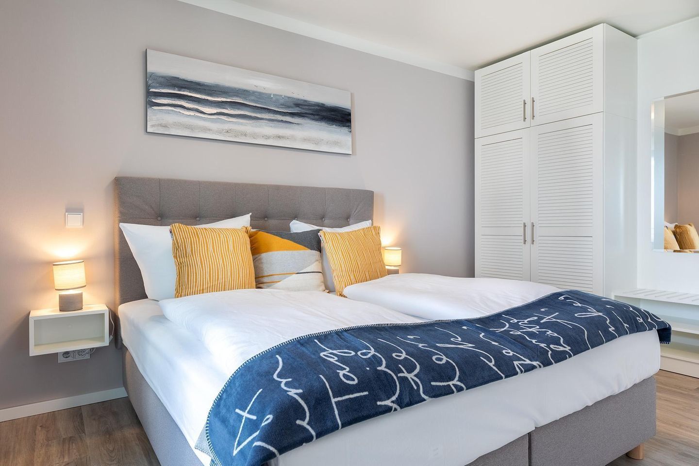 Nur wenige Schritte vom Meer entfernt und direkt am idyllischen Godewindpark erwartet euch eine exklusive Ferienresidenz mit modernen Apartments für bis zu sechs Personen. Das elegante, halbrund gestaltete Gebäude verbindet zeitgemäße Architektur mit hohem Wohnkomfort. Jedes Apartment verfügt über ein kostenfreies WLAN, Fußbodenheizung sowie Sonnenschutzverglasung. Warme Naturfarben schaffen ein behagliches Ambiente, in dem man sich sofort zuhause fühlt.