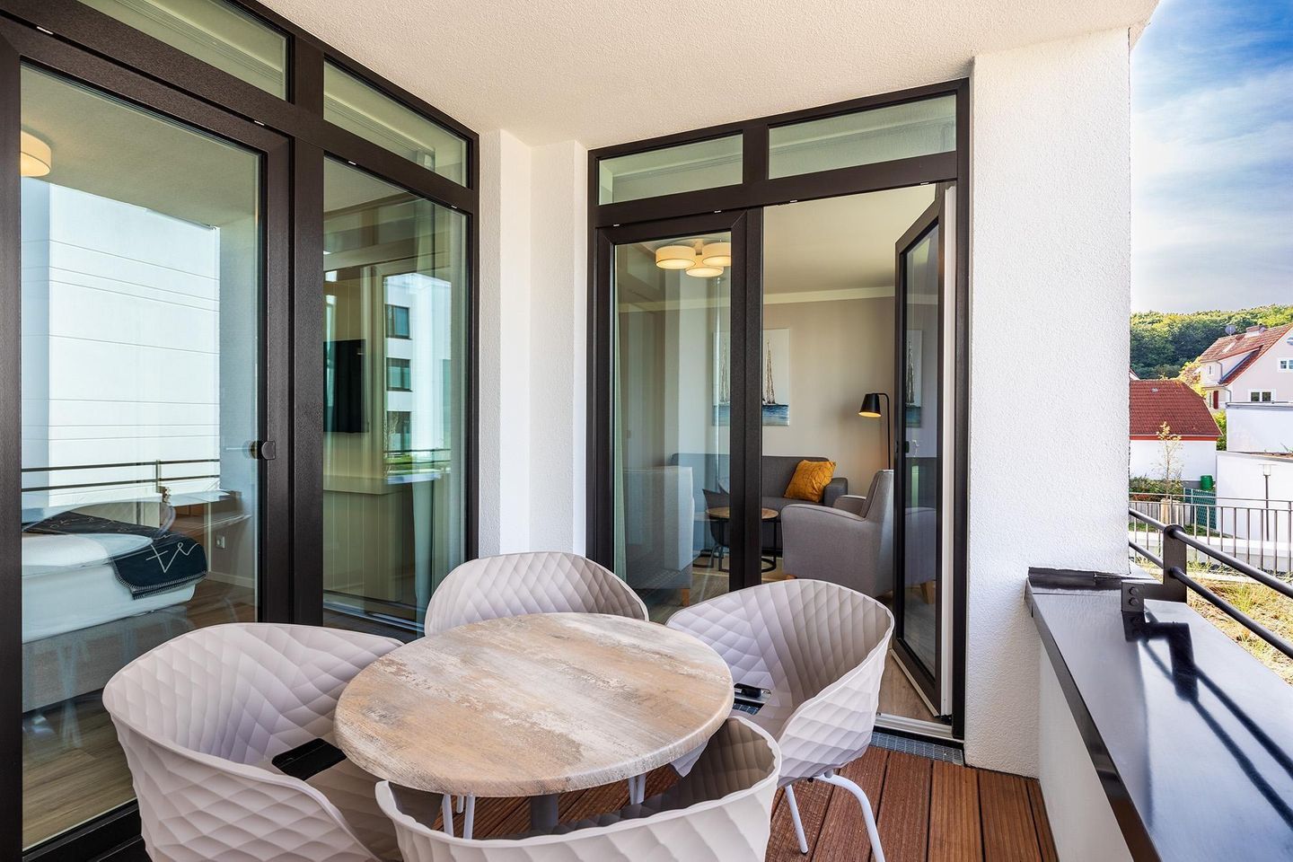 Erleben Sie stilvollen Komfort nur 300 Meter vom Ostseestrand entfernt in diesem 53 m² großen 2-Zimmer-Apartment für bis zu 4 Personen. Das lichtdurchflutete Apartment im ersten Obergeschoss bietet ein gemütliches Schlafzimmer mit Boxspringbett, einen offenen Wohn- und Essbereich mit voll ausgestatteter Küche, komfortablem Sofa, Essbereich und SMART-TV.