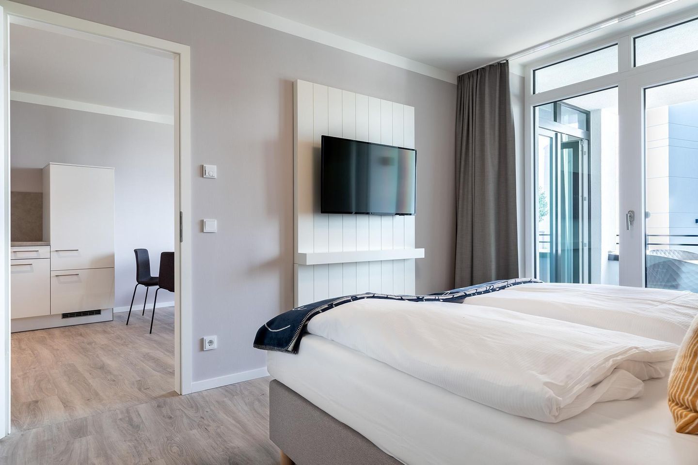Auch Hunde sind in ausgewählten Apartments herzlich willkommen. Der angrenzende Godewindpark bietet perfekte Bedingungen für entspannte Spaziergänge mit Hund und führt gleichzeitig direkt zum Strand.