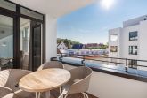 Ein echtes Highlight ist die Südwesten Loggia, die sowohl vom Wohn- als auch vom Schlafzimmer aus zugänglich ist. Ausgestattet mit bequemen Gartenmöbeln, lädt sie zu langen Sonnenstunden, entspannten Lesemomenten oder einem Glas Wein am Abend ein – Ihr persönlicher Rückzugsort im Freien.