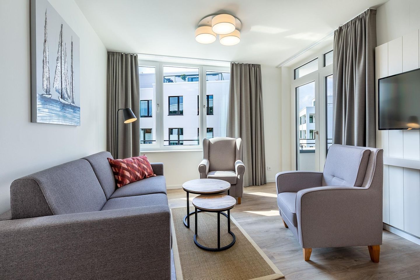 Nur wenige Schritte vom Meer entfernt und direkt am idyllischen Godewindpark erwartet euch eine exklusive Ferienresidenz mit modernen Apartments für bis zu sechs Personen. Das elegante, halbrund gestaltete Gebäude verbindet zeitgemäße Architektur mit hohem Wohnkomfort. Jedes Apartment verfügt über ein kostenfreies WLAN, Fußbodenheizung sowie Sonnenschutzverglasung. Warme Naturfarben schaffen ein behagliches Ambiente, in dem man sich sofort zuhause fühlt.