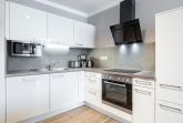 Zur Ausstattung der Ferienanlage gehören außerdem eine Rezeption mit Lobby und Kamin-Lounge, eine Tiefgarage mit inkludiertem Stellplatz (max. Höhe 2 m) sowie gemeinschaftlich nutzbare Waschräume auf jeder Etage. Zwei Aufzüge sorgen für barrierefreien Zugang zu allen Apartments. Fahrräder lassen sich sicher im abschließbaren Kellerraum unterbringen, und vor dem Haus steht eine öffentliche Ladestation für E-Autos zur Verfügung, die gegen Gebühr genutzt werden kann.