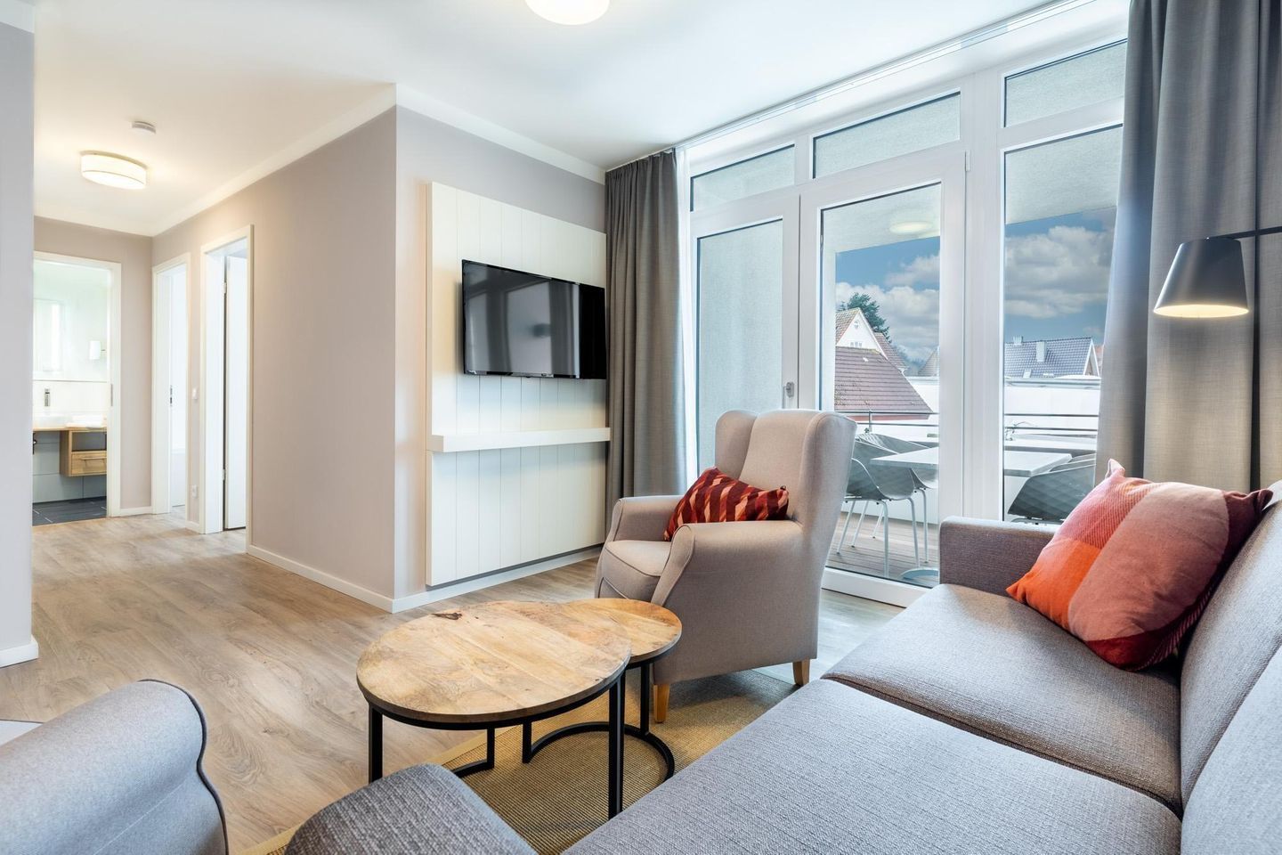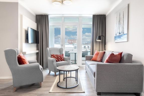 Nur wenige Schritte vom Meer entfernt und direkt am idyllischen Godewindpark erwartet euch eine exklusive Ferienresidenz mit modernen Apartments für bis zu sechs Personen. Das elegante, halbrund gestaltete Gebäude verbindet zeitgemäße Architektur mit hohem Wohnkomfort. Jedes Apartment verfügt über ein kostenfreies WLAN, Fußbodenheizung sowie Sonnenschutzverglasung. Warme Naturfarben schaffen ein behagliches Ambiente, in dem man sich sofort zuhause fühlt.