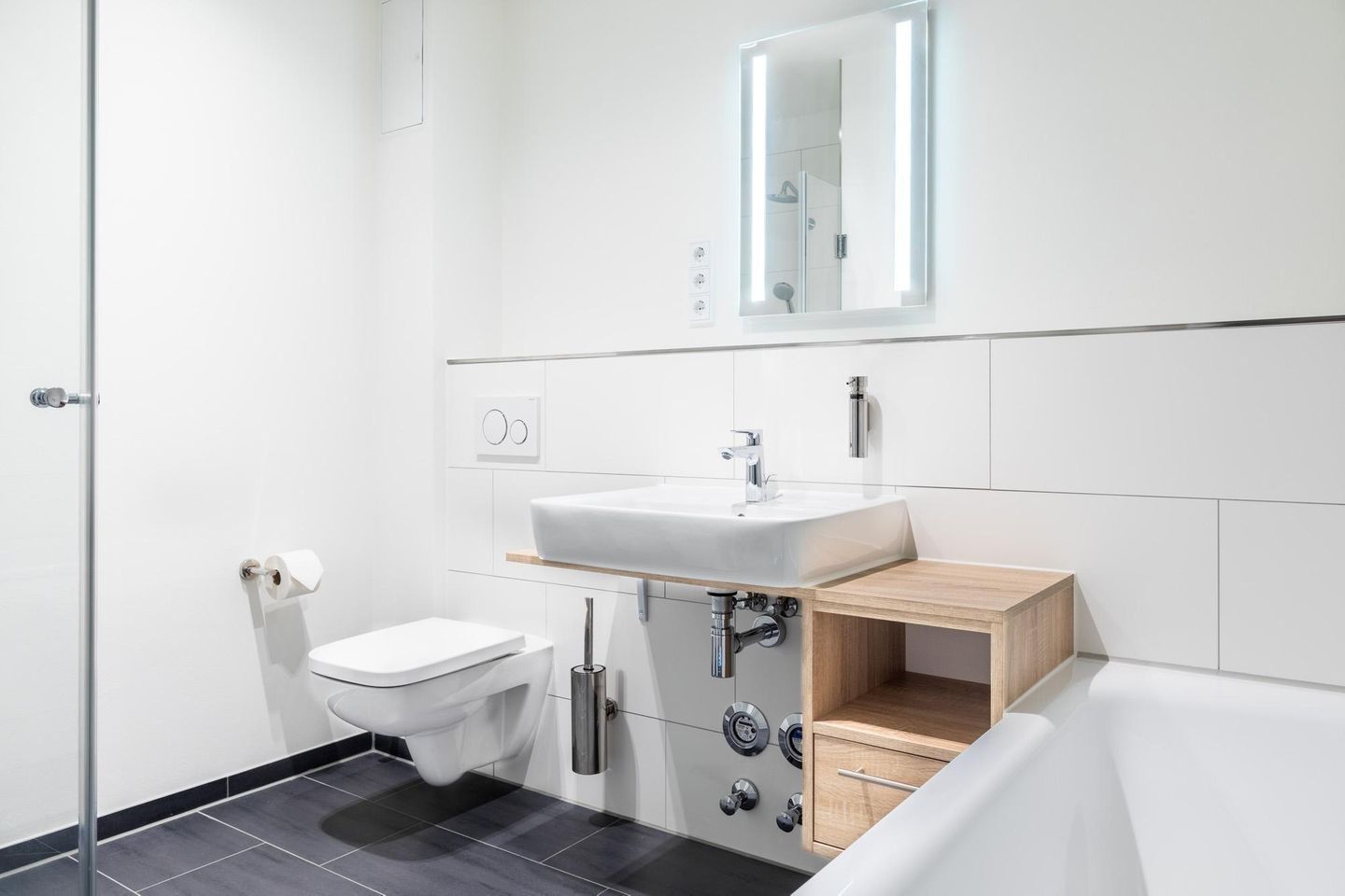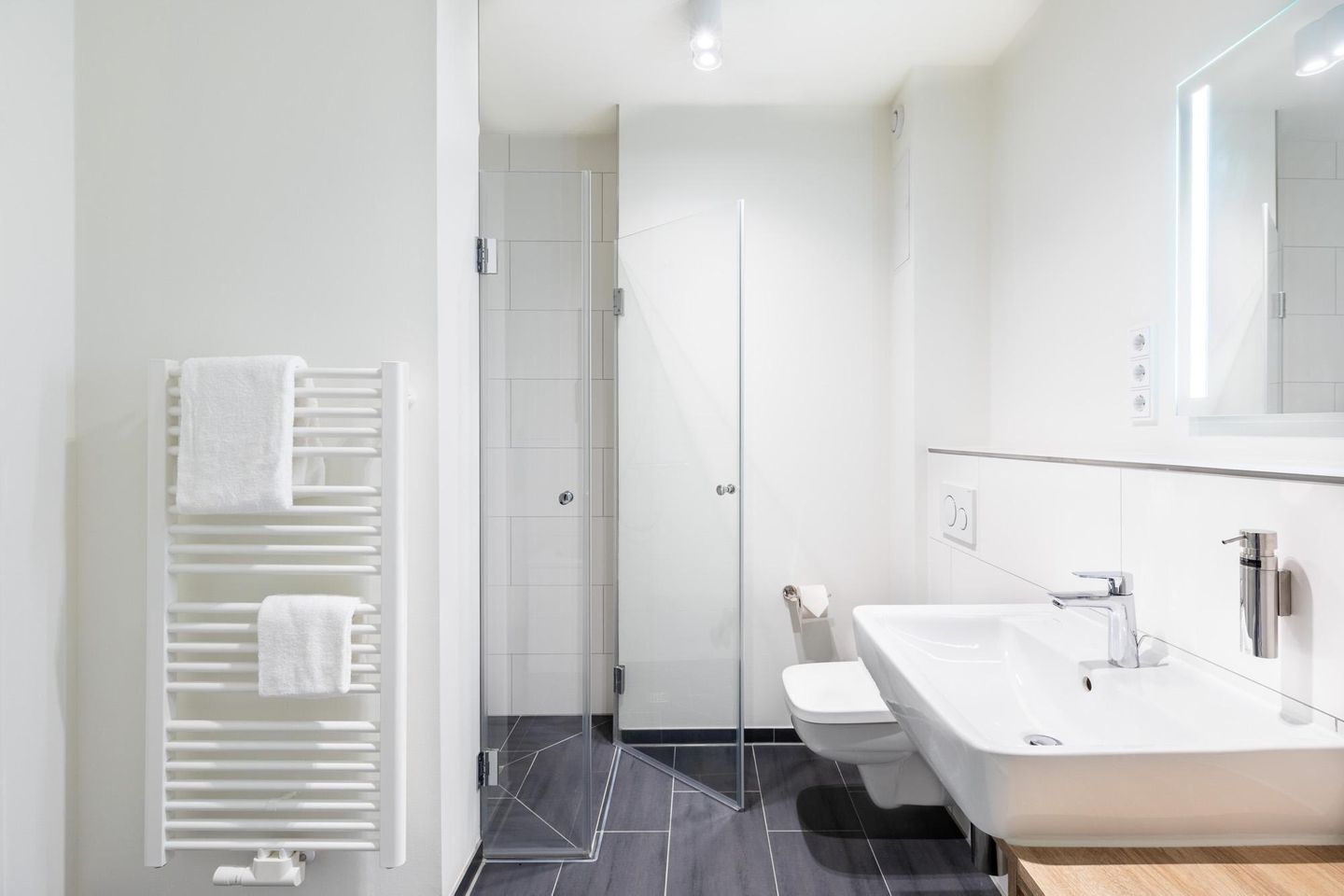 Ein besonderes Highlight ist die großzügige Wellnesslandschaft: Finnische Sauna, Biosauna, Dampfbad, Fußbäder, Erlebnisduschen, Eisbrunnen sowie Ruhezonen mit Kamin laden zum Entspannen ein. Während der Öffnungszeiten steht euch der Spa-Bereich kostenfrei zur Verfügung. Wer keinen Bademantel dabei hat, kann sich diesen ebenso wie Saunatücher bequem gegen eine geringe Gebühr leihen. Ein Aufzug verbindet den Wellnessbereich mit allen Etagen, sodass Sie bequem zu Ihrer Wohnung gelangen können.