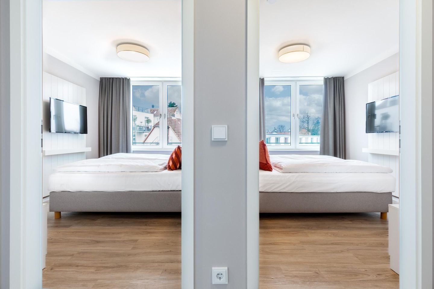 Auch Hunde sind in ausgewählten Apartments herzlich willkommen. Der angrenzende Godewindpark bietet perfekte Bedingungen für entspannte Spaziergänge mit Hund und führt gleichzeitig direkt zum Strand.
