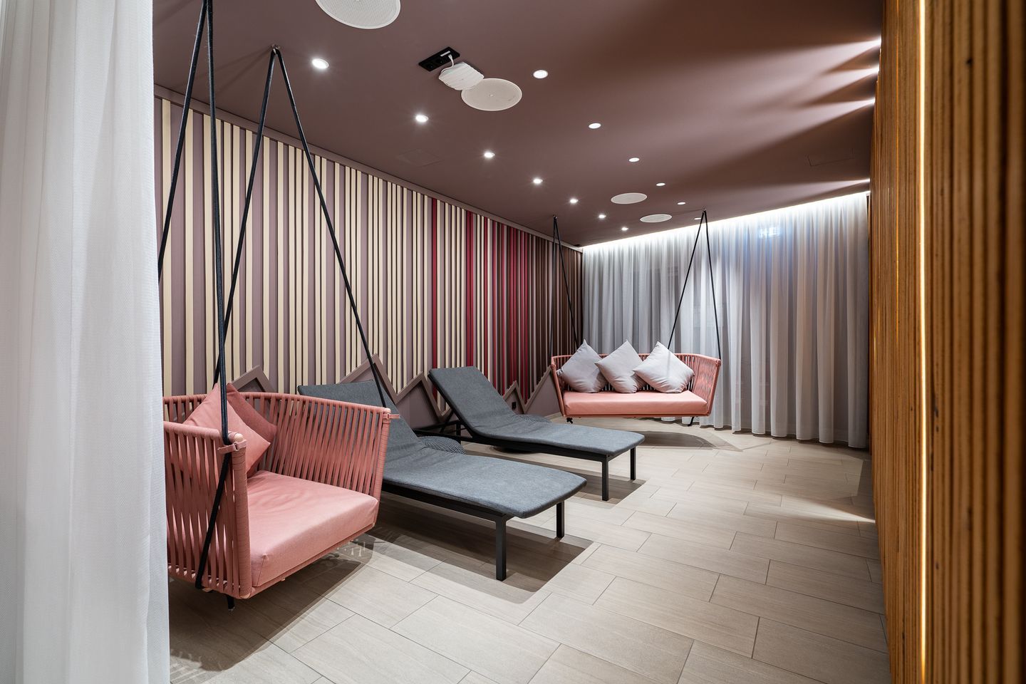 Ein besonderes Highlight ist die großzügige Wellnesslandschaft: Finnische Sauna, Biosauna, Dampfbad, Fußbäder, Erlebnisduschen, Eisbrunnen sowie Ruhezonen mit Kamin laden zum Entspannen ein. Während der Öffnungszeiten steht euch der Spa-Bereich kostenfrei zur Verfügung. Wer keinen Bademantel dabei hat, kann sich diesen ebenso wie Saunatücher bequem gegen eine geringe Gebühr leihen. Ein Aufzug verbindet den Wellnessbereich mit allen Etagen, sodass Sie bequem zu Ihrer Wohnung gelangen können.
