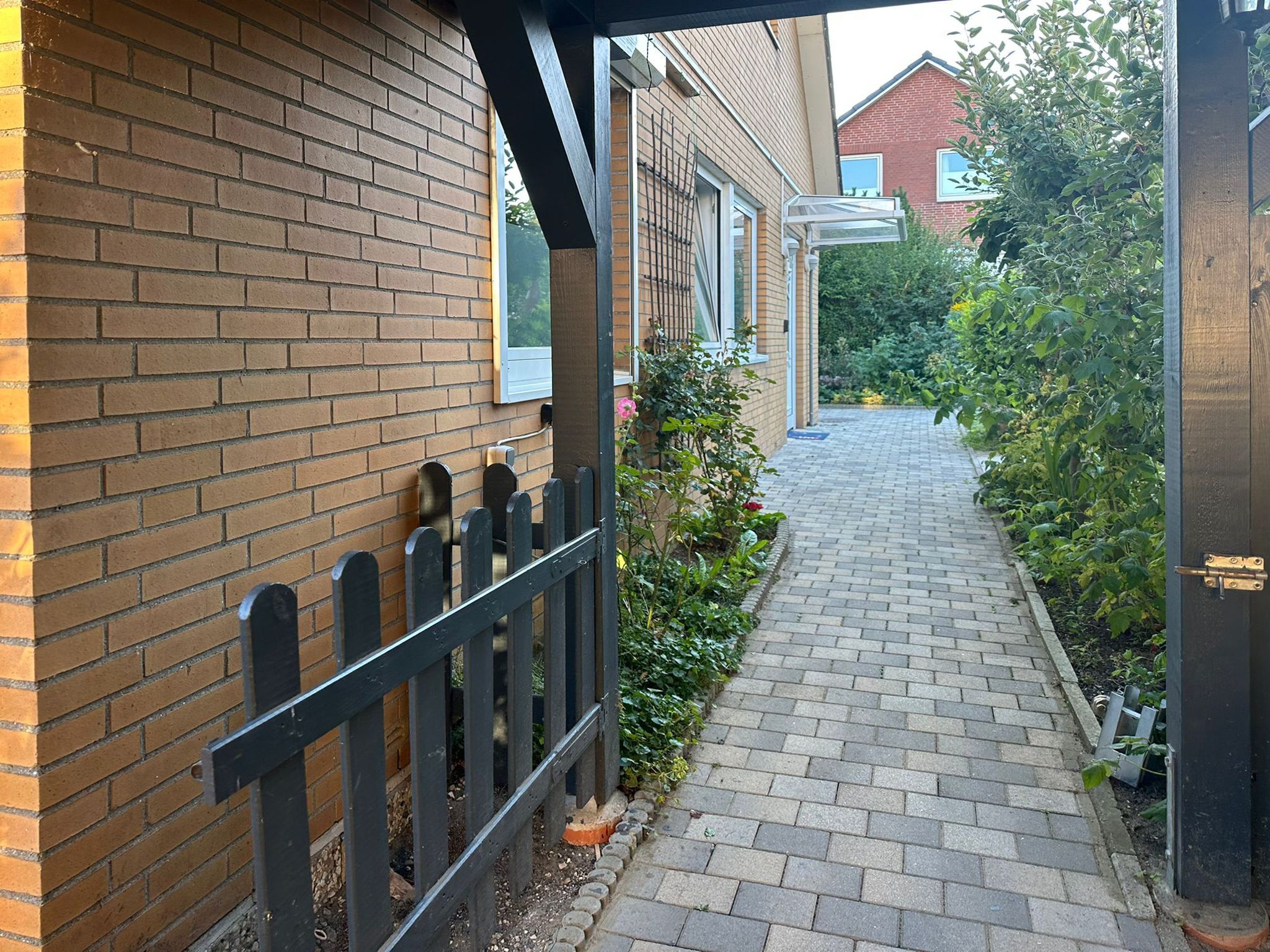 Der kleine Gartenbereich lädt mit seiner Sitzecke zum Verweilen ein. Auch ein Grill kann genutzt werden.