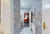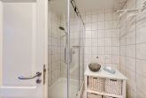 - Badezimmer mit Dusche, Waschtisch und Toilette