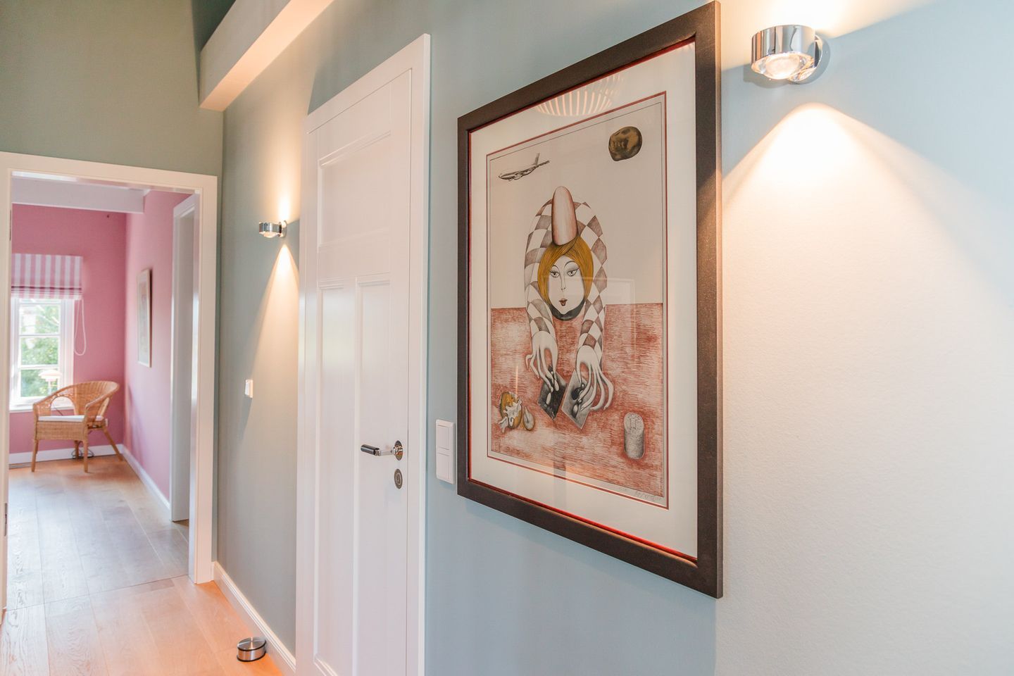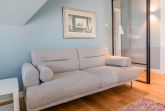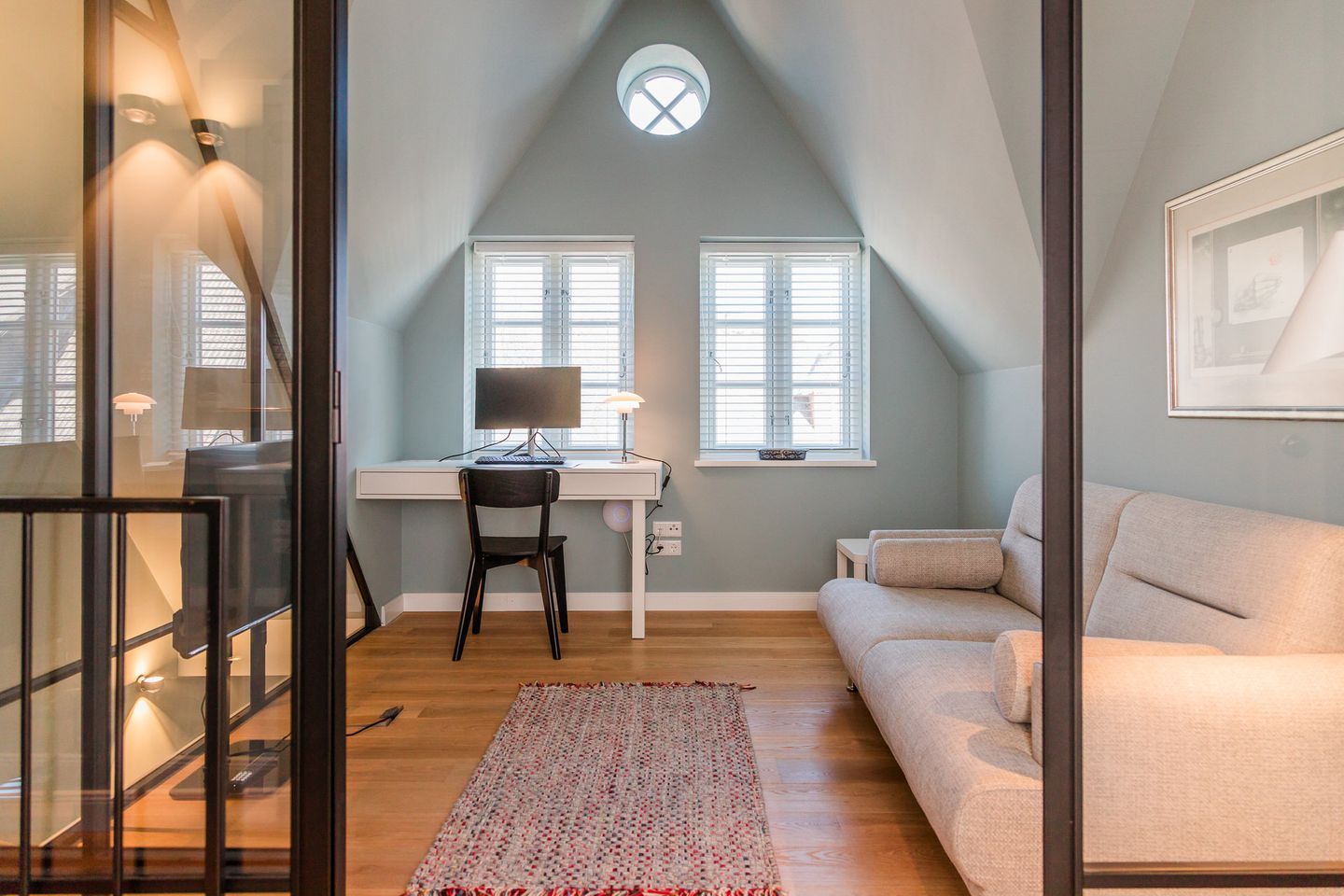 Im Obergeschoss sind zwei weitere Schlafzimmer - eines davon mit Vollbad en Suite - und ein separates Duschbad sowie ein Lounge- und Arbeitsbereich gelegen.