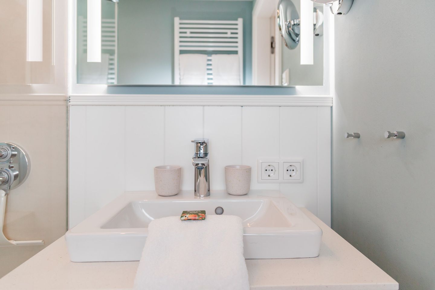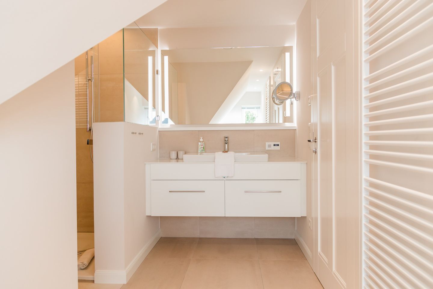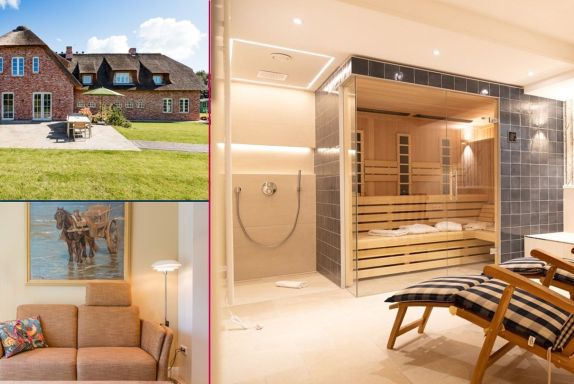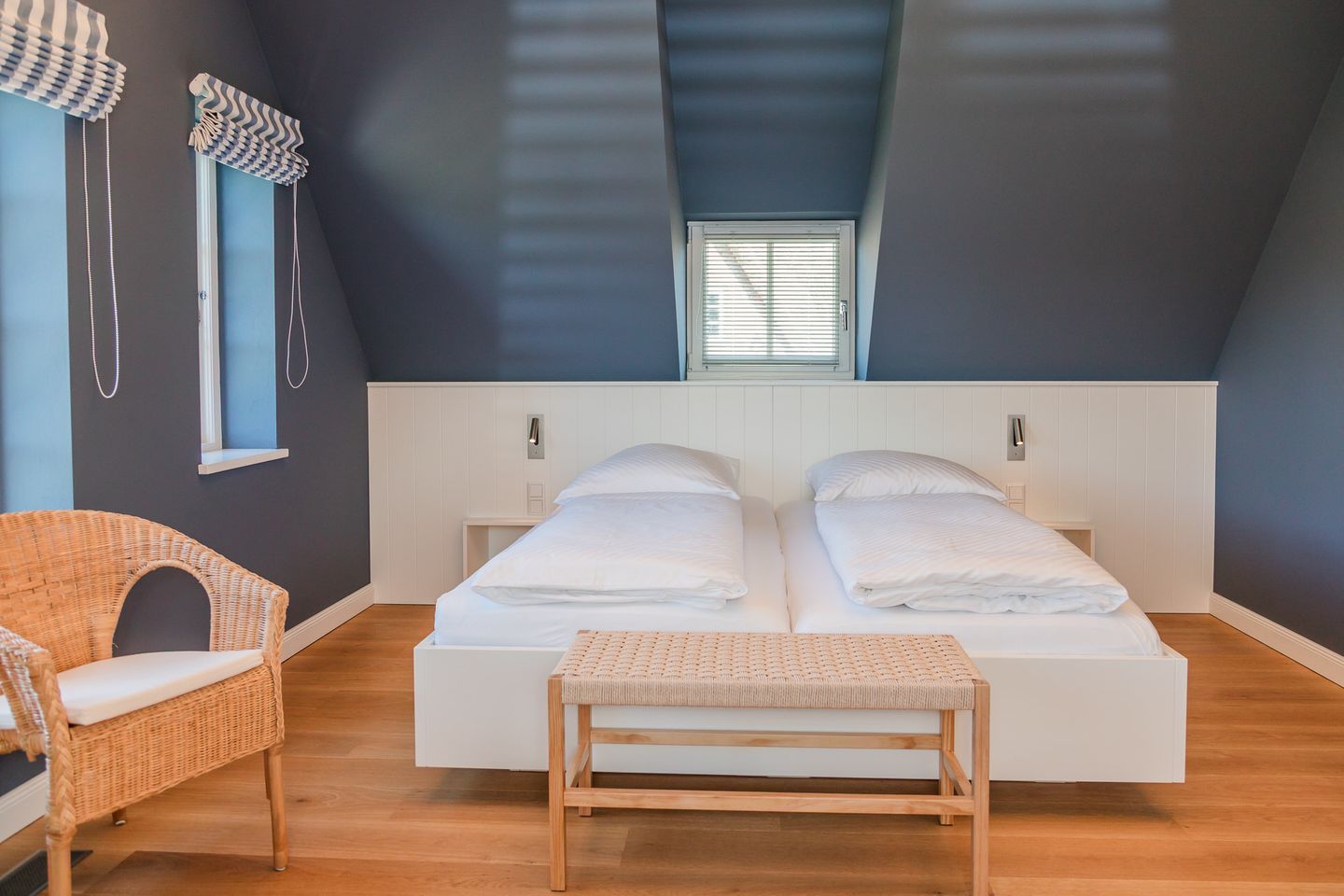 Der reetgedeckte Ferienhausteil Hummerklippen a verfügt über 3 Schlafzimmer und 3 Bäder und bietet somit komfortabel Platz für bis zu 6 Personen zuzüglich einer Kleinkinderaufbettung.