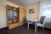 Im Wohnbereich können Sie auf der Couch entspannen. Die Einrichtung ist zweckmäßig und es gibt eine Sitzecke für bis zu 2 Personen.