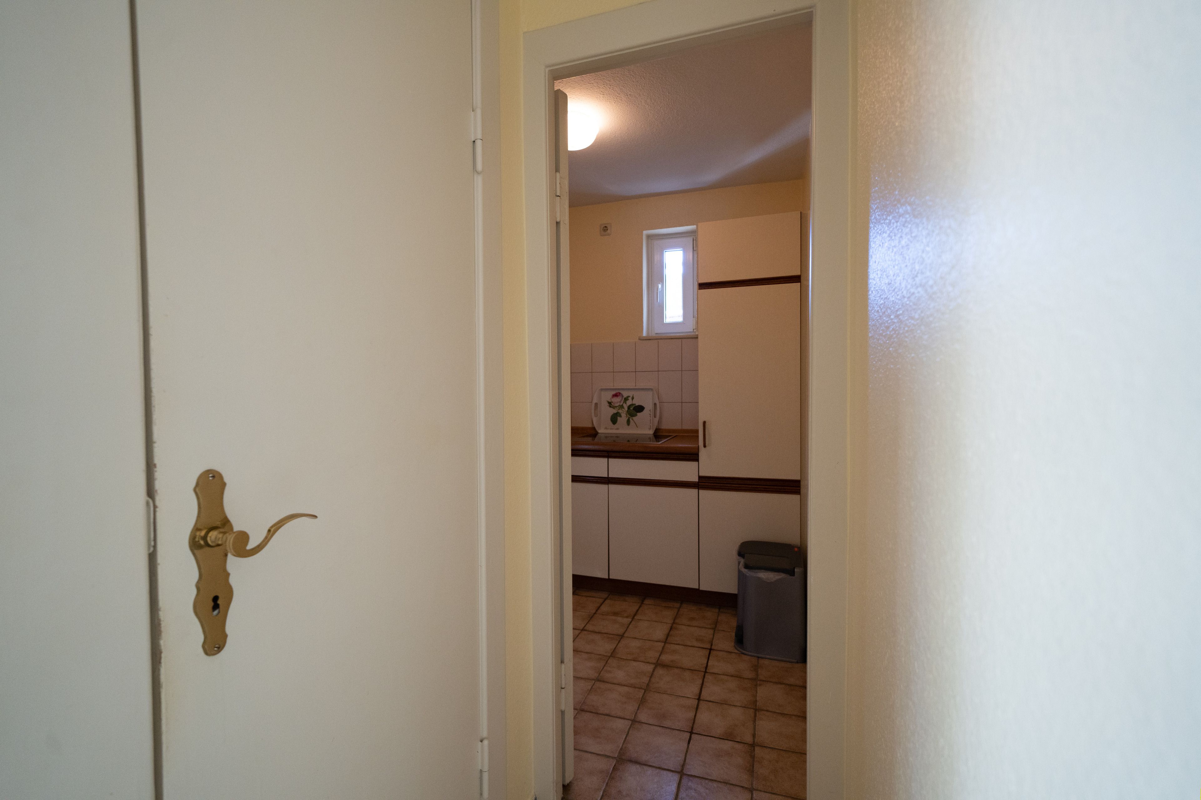 Das Badezimmer ist mit Dusche und WC ausgestattet.