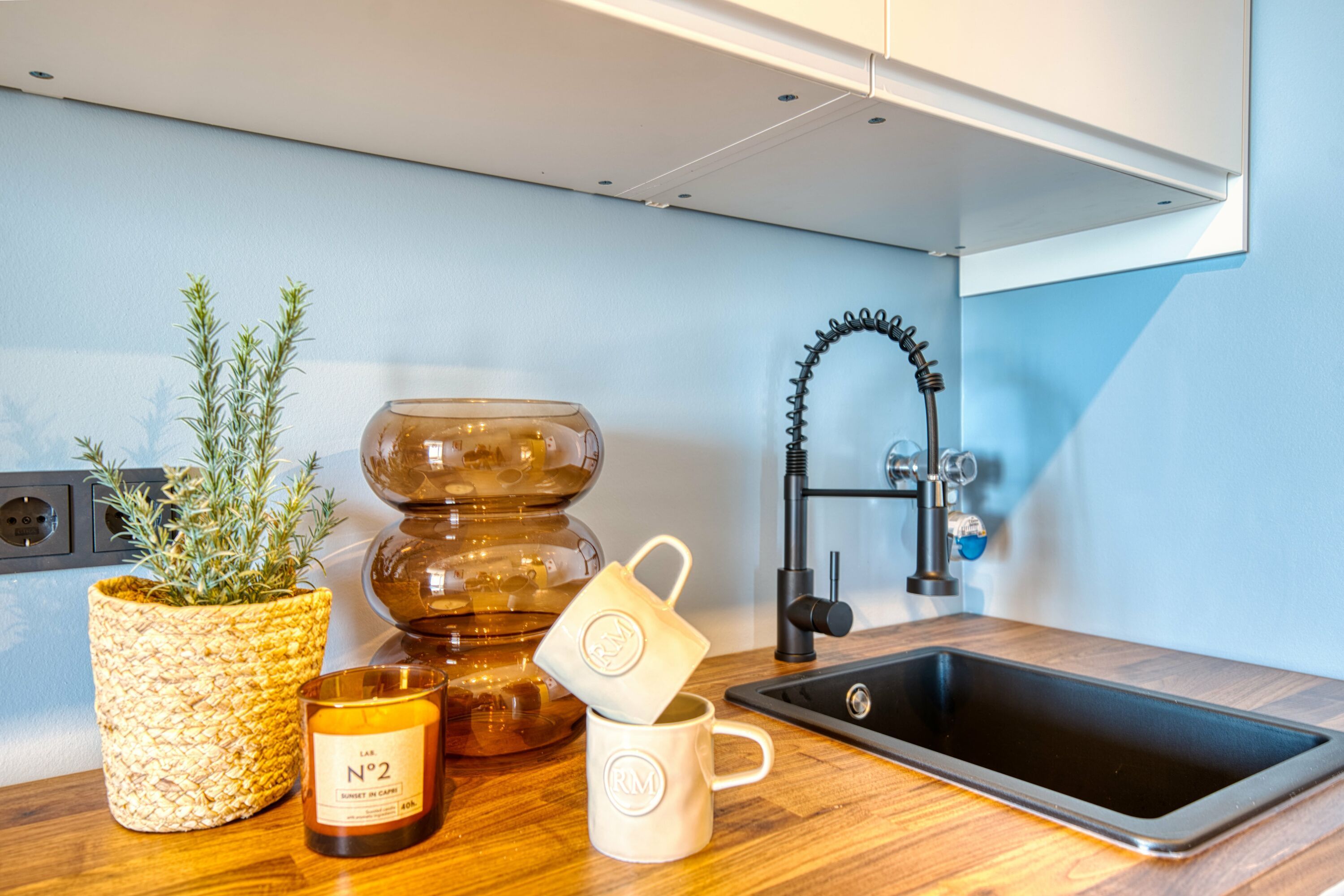 Der Wohnbereich ist mit Möbeln der Marke Riviera Maison ausgestattet – bekannt für stilvolles Design und hohe Qualität. Durch den maritimen Einrichtungsstil, moderne Bodenbeläge und ausgewählte Deko entsteht ein harmonisches Wohlfühlambiente.