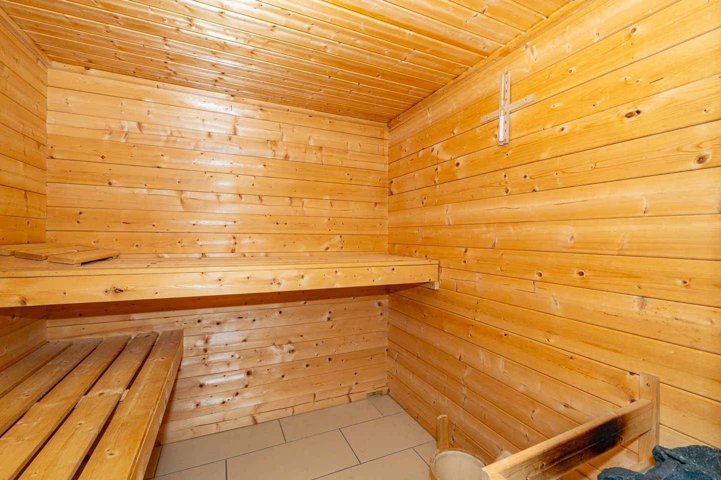Die Ferienwohnung verfügt über zwei stilvoll ausgestattete Badezimmer. Eines der Bäder ist mit einer modernen Dusche und einer Badewanne ausgestattet, das andere bietet eine zusätzliche Dusche. Spiegel, Waschbecken und WC gehören selbstverständlich zur Ausstattung. Für entspannte Momente sorgt die zur Eigennutzung verfügbare private Sauna – genießen Sie Wellness und Erholung in Ihrer eigenen Ferienwohnung.