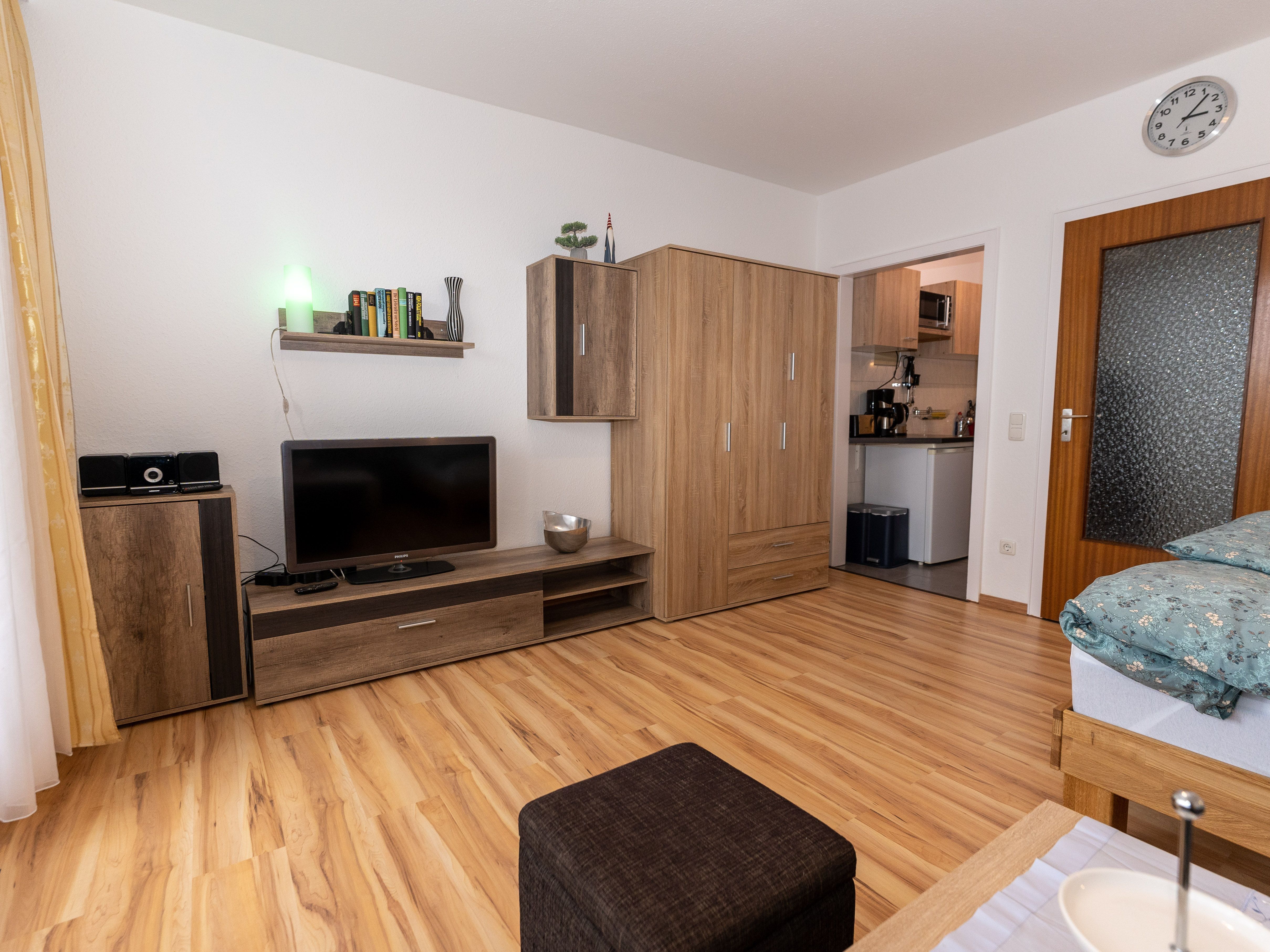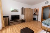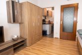 Das Apartment besteht aus einem großen Wohn-/ Schlafzimmer, einer funktionellen kleinen Küche, einem großen Balkon, Flur mit Garderobe sowie einem Badezimmer mit Dusche.