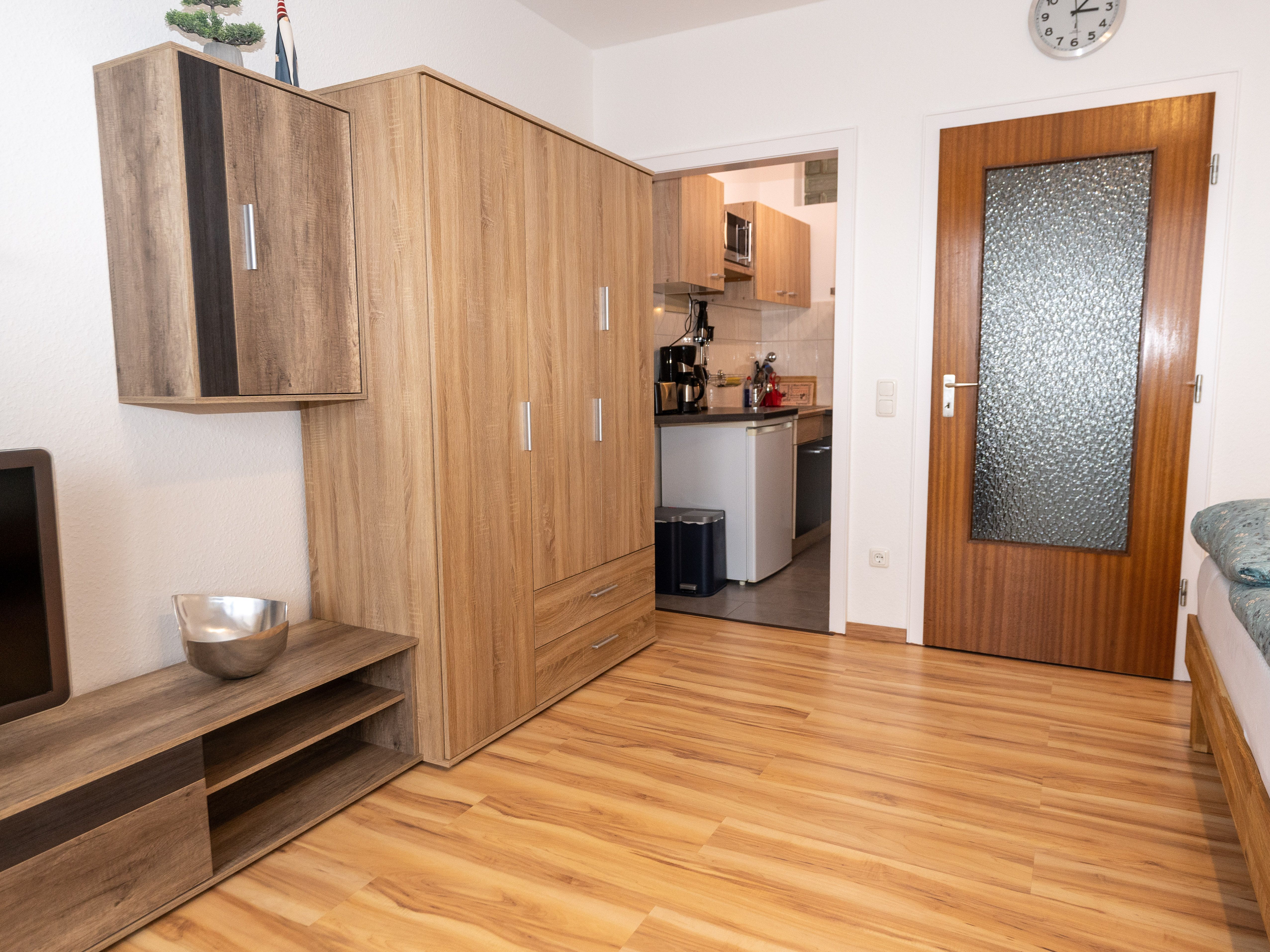 Das 1-Zimmer-Apartment mit Westbalkon liegt zentral in der Innenstadt von Wilhelmshaven - nur wenige Minuten zu Fuß vom Hauptbahnhof entfernt im dritten Stock. Auch gehört ein überdachter West-Balkon mit Tisch und zwei Stühlen zur Austattung und bietet Ihnen einen Platz an der frischen Luft. Das Apartment verfügt über ein Doppelbett und ein Schlafsofa.Von hier aus sind Sie in wenigen Minuten in der Innenstadt. Auch den Südstrand können Sie fußläufig in 15 Minuten erreichen. Ein PKW-Stellplatz gehört ebenfalls zum Feriendomizil. Möchten Sie Ihr Fahrrad mitbringen und sicher untergebracht wissen? Kein Problem - ein Keller zur Unterbringung Ihrer Fahrräder steht Ihnen zur Verfügung. Die Wohnung ist im dritten Obergeschoß und nicht barrierefrei.