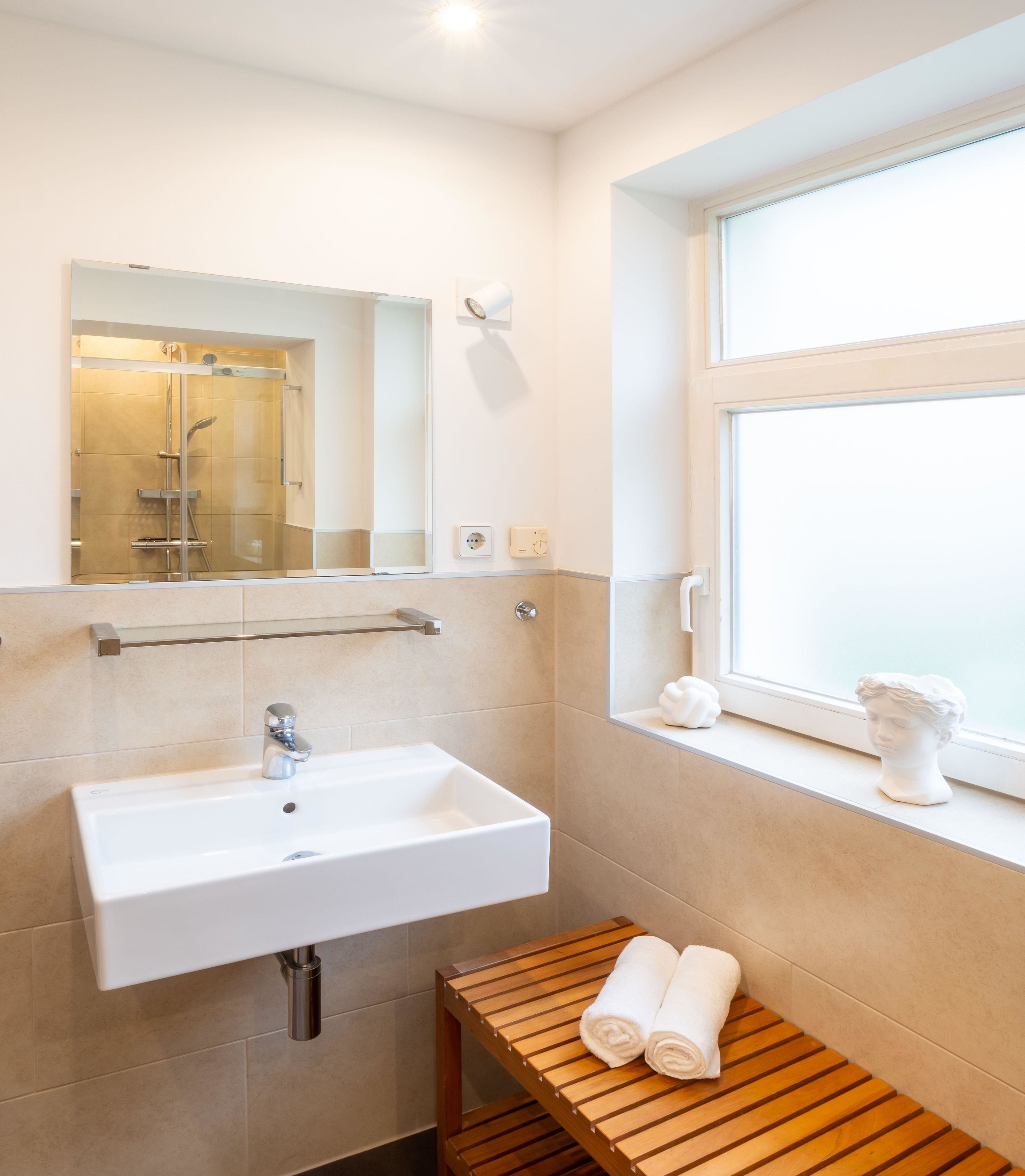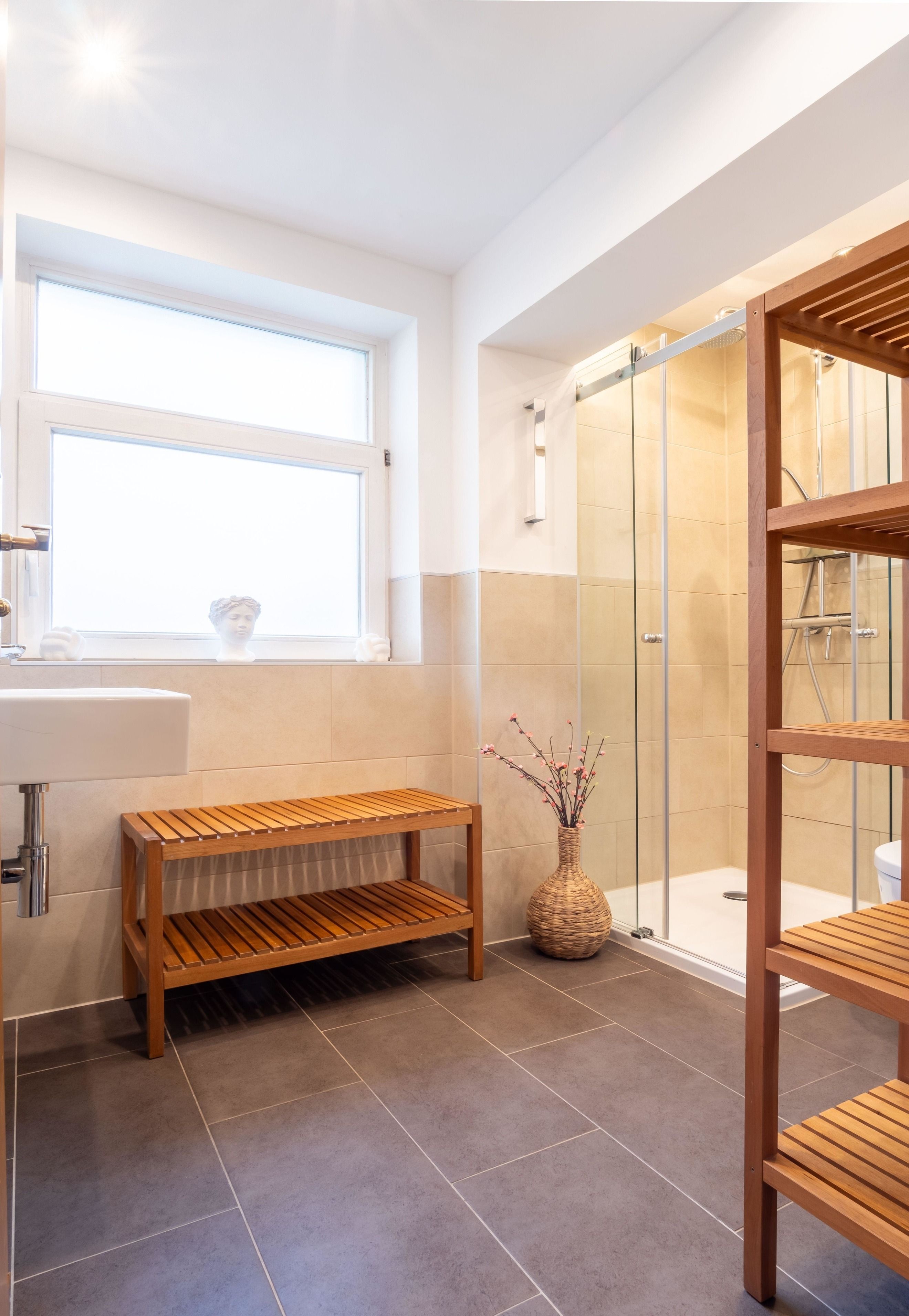 Kommen Sie erschöpft vom Tag zurück, wartet schon eine heiße Wellnessdusche in dem modern gestalteten Bad auf Sie. Wie wäre es zum Ausklang eines romantischen Abends einem Rotwein am modernen Bio-Kamin? Legen Sie die Beine hoch und entspannen Sie sich. Bei uns bleiben keine Wünsche offen.