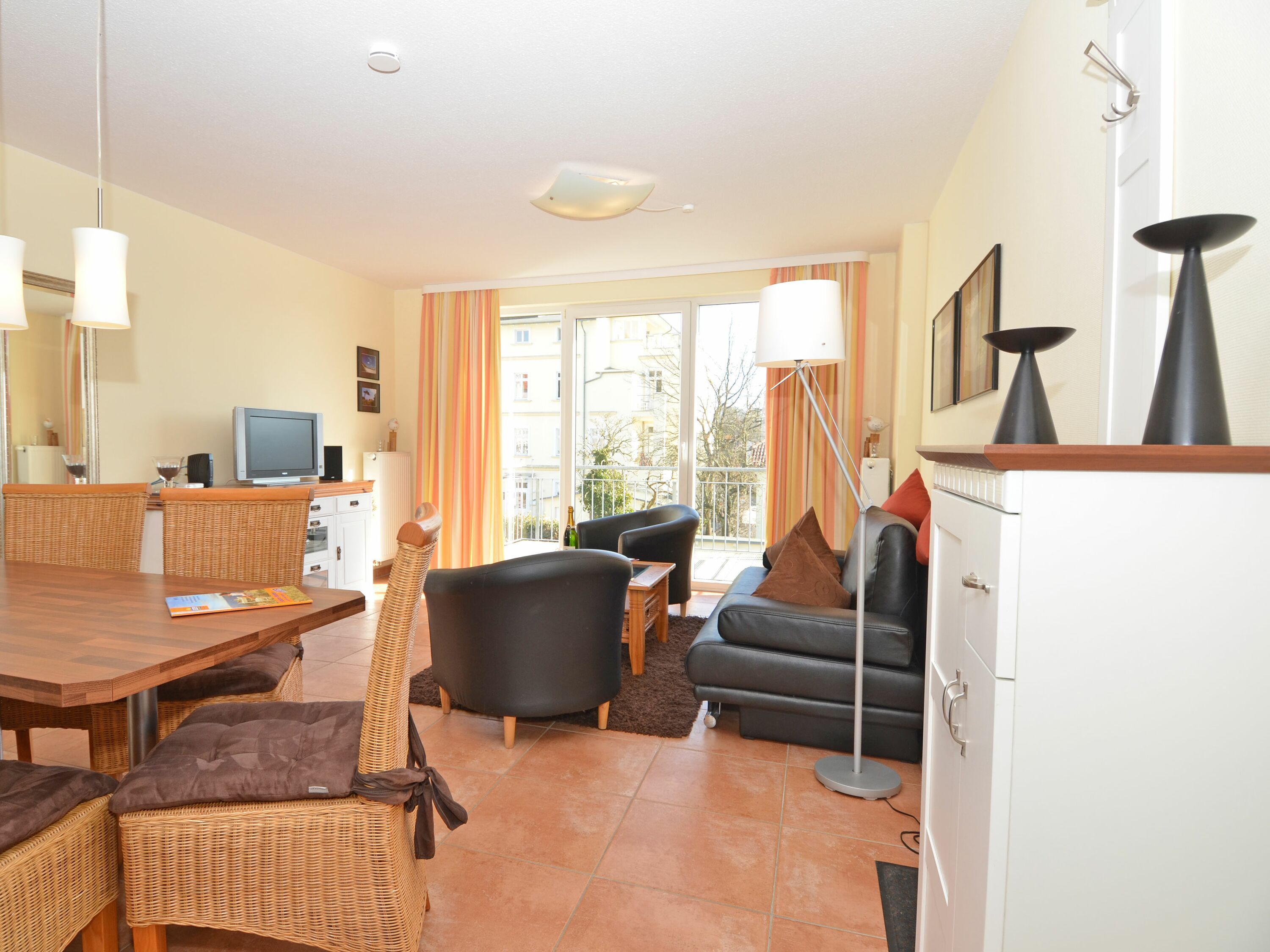 Diese gemütlich im maritimen Stil eingerichtete 2-Raum-Ferienwohnung Rügenglück mit großem Balkon in Südost-Ausrichtung befindet sich in einer ruhigen Wohnstraße quer nur Prachtmeile Wilhelmstraße mit ihren altehrwürdigen Gebäuden im Stil der Bäderarchitektur. Den Ostseestrand mit der historischen Seebrücke erreicht man fußläufig. Sellin bietet auch zahlreiche Möglichkeiten zum Wandern oder für Touren mit dem Fahrrad durch ein herrliches Laubwaldgebiet. Entlang der Küste, am Hochufer oder durch Wälder gelangt man in die angrenzenden Seebäder Baabe, Göhren oder Binz.