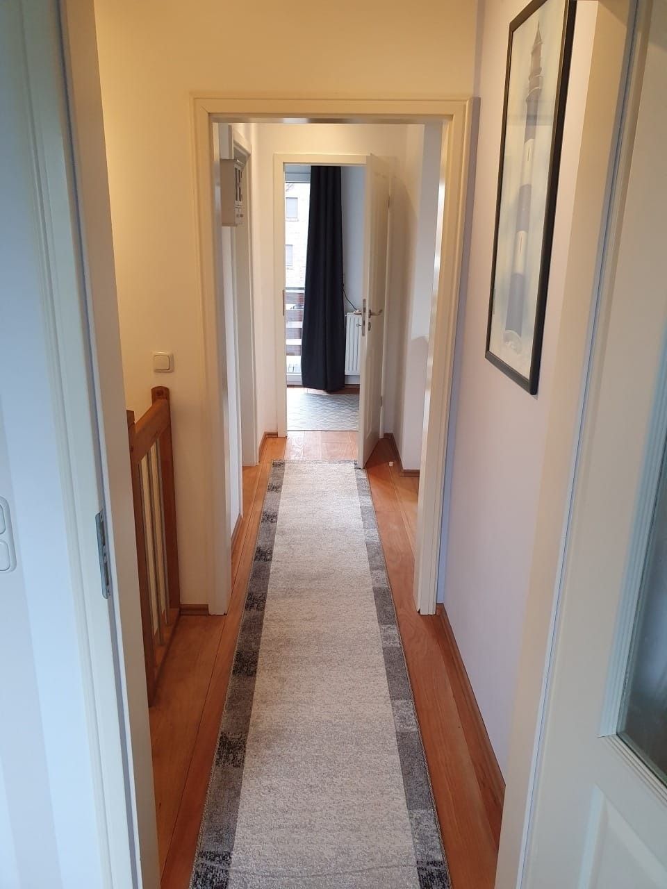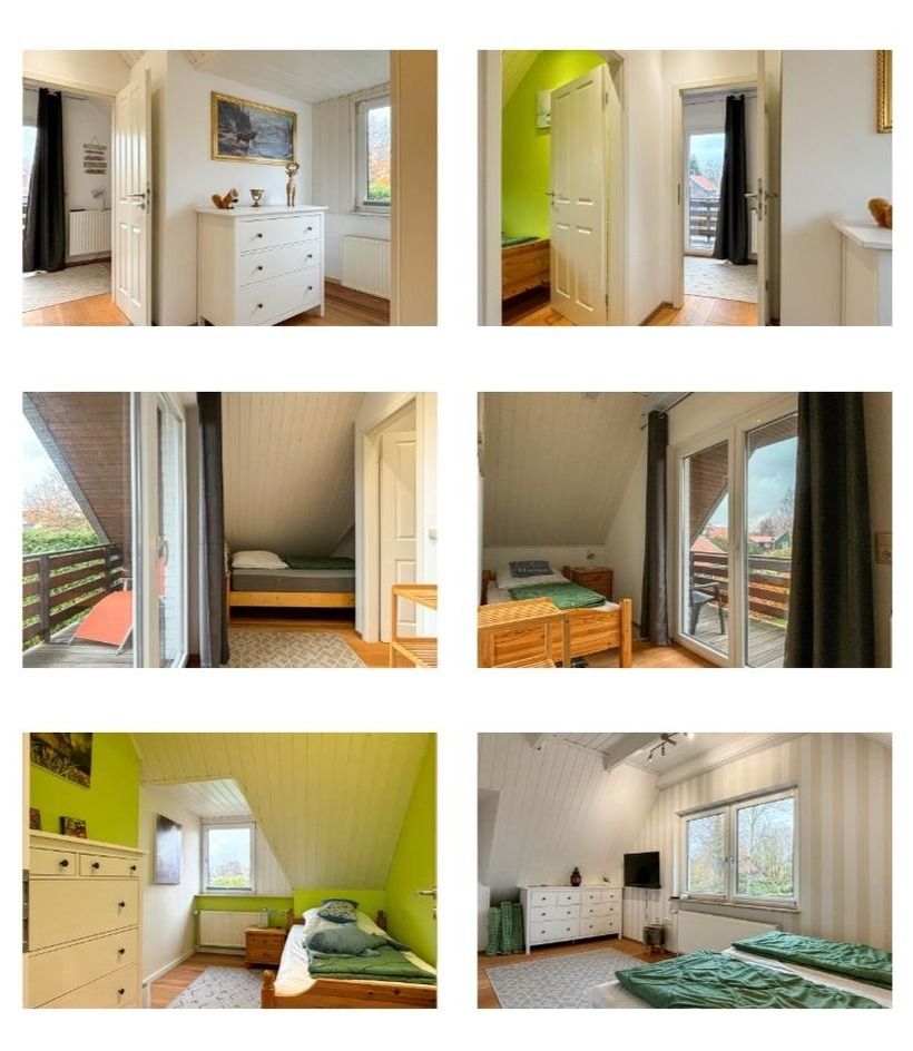 Drei Schlafzimmer im Obergeschoss, eins davon mit eigenem Balkon. Bei Bedarf kann ein Kinderbett im Elternschlafzimmer dazugestellt werden