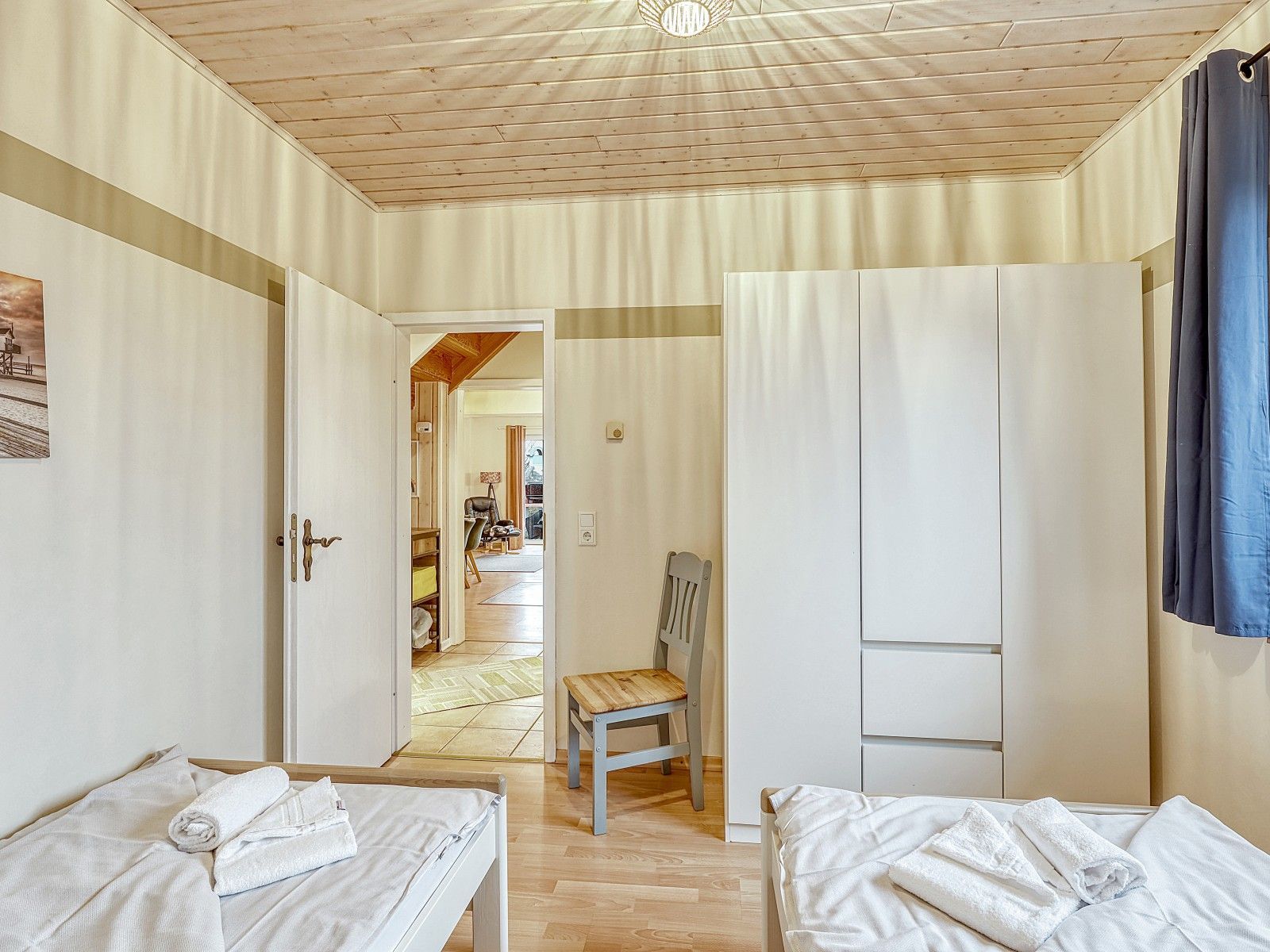 • 4 Schlafzimmer (3x EG mit je 2 Einzelbetten, 1x OG mit Doppelbett)